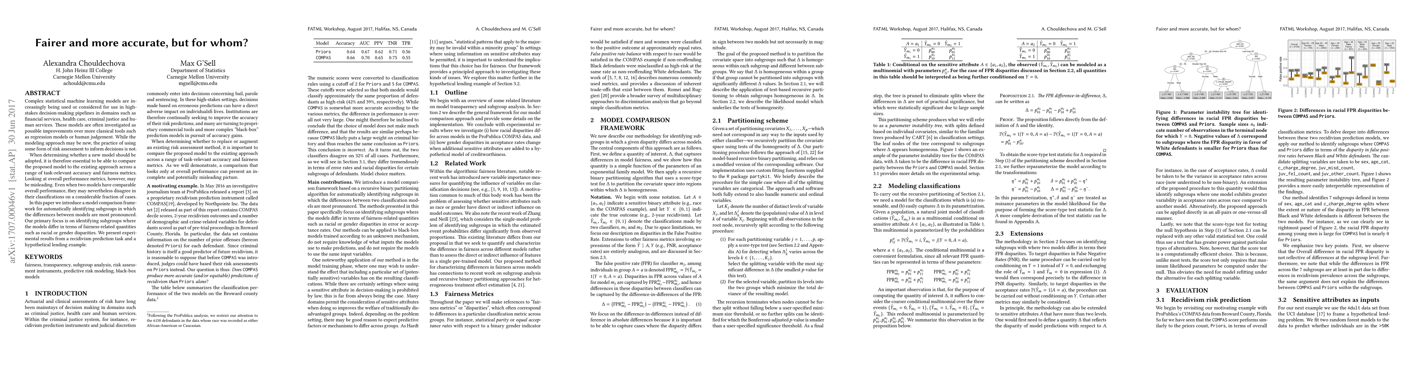 Complex statistical machine learning models are increasingly being used or considered for use in high-stakes decision-making pipelines in domains such as financial services, health care, criminal justice and human services. These models are often investigated as possible improvements over more classical tools such as regression models or human judgement. While the modeling approach may be new, the practice of using some form of risk assessment to inform decisions is not. When determining whether a new model should be adopted, it is therefore essential to be able to compare the proposed model to the existing approach across a range of task-relevant accuracy and fairness metrics. Looking at overall performance metrics, however, may be misleading. Even when two models have comparable overall performance, they may nevertheless disagree in their classifications on a considerable fraction of cases. In this paper we introduce a model comparison framework for automatically identifying subgroups in which the differences between models are most pronounced. Our primary focus is on identifying subgroups where the models differ in terms of fairness-related quantities such as racial or gender disparities. We present experimental results from a recidivism prediction task and a hypothetical lending example.