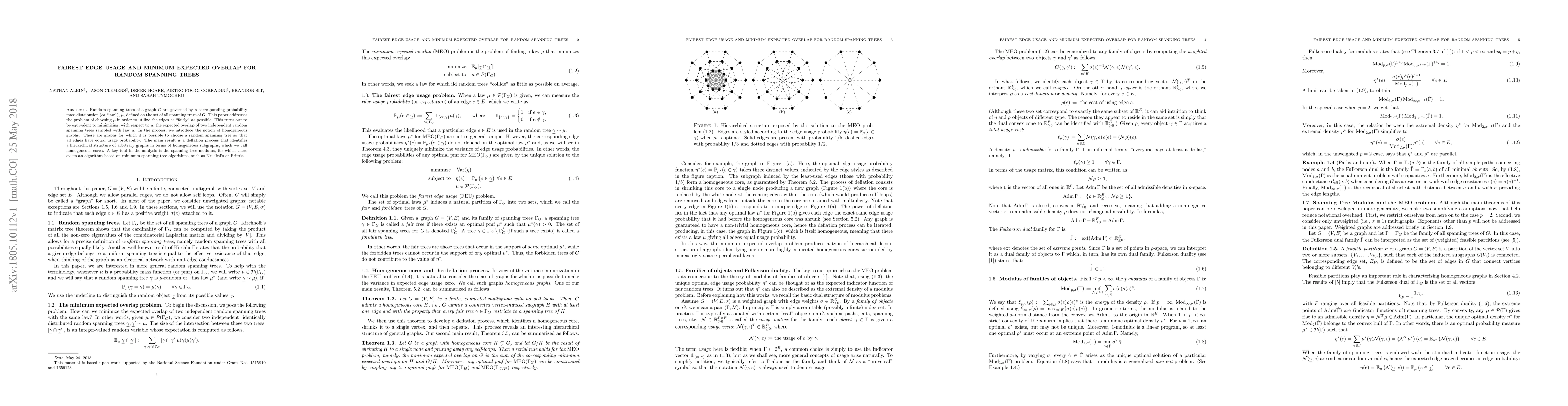 This paper explores optimizing the probability distribution for random spanning trees to achieve fair edge usage, equivalent to minimizing the expected overlap of two independent trees. It introduces homogeneous graphs and presents a deflation process to identify homogeneous cores, using the spanning tree modulus as a key analytical tool.