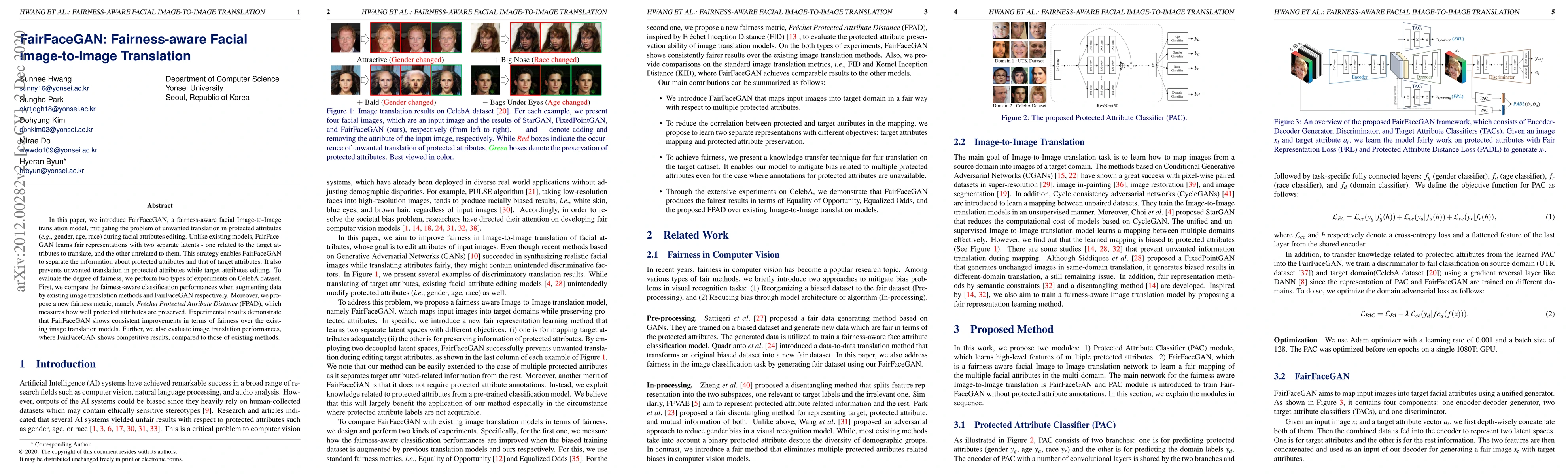 FairFaceGAN is introduced as a fairness-aware facial image-to-image translation model, separating target and protected attributes using two latents. It outperforms existing models in fairness, as shown by improved classification performances and a new Frechet Protected Attribute Distance (FPAD) metric. Despite fairness focus, FairFaceGAN maintains competitive image translation results.