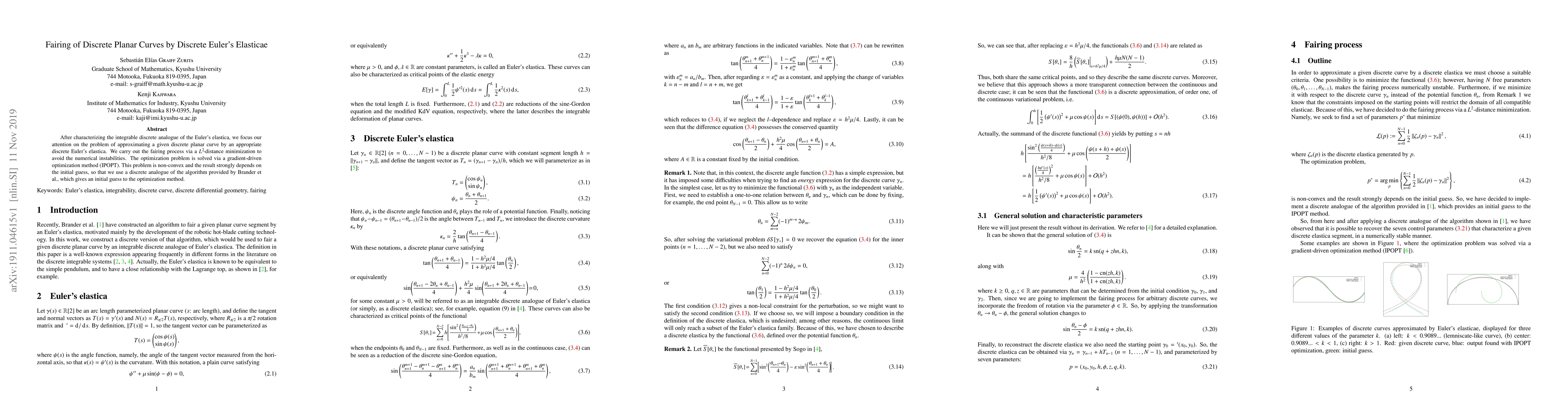 After characterizing the integrable discrete analogue of the Euler's elastica, we focus our attention on the problem of approximating a given discrete planar curve by an appropriate discrete Euler's elastica. We carry out the fairing process via a $L^2\!$-distance minimization to avoid the numerical instabilities. The optimization problem is solved via a gradient-driven optimization method (IPOPT). This problem is non-convex and the result strongly depends on the initial guess, so that we use a discrete analogue of the algorithm provided by Brander et al., which gives an initial guess to the optimization method.