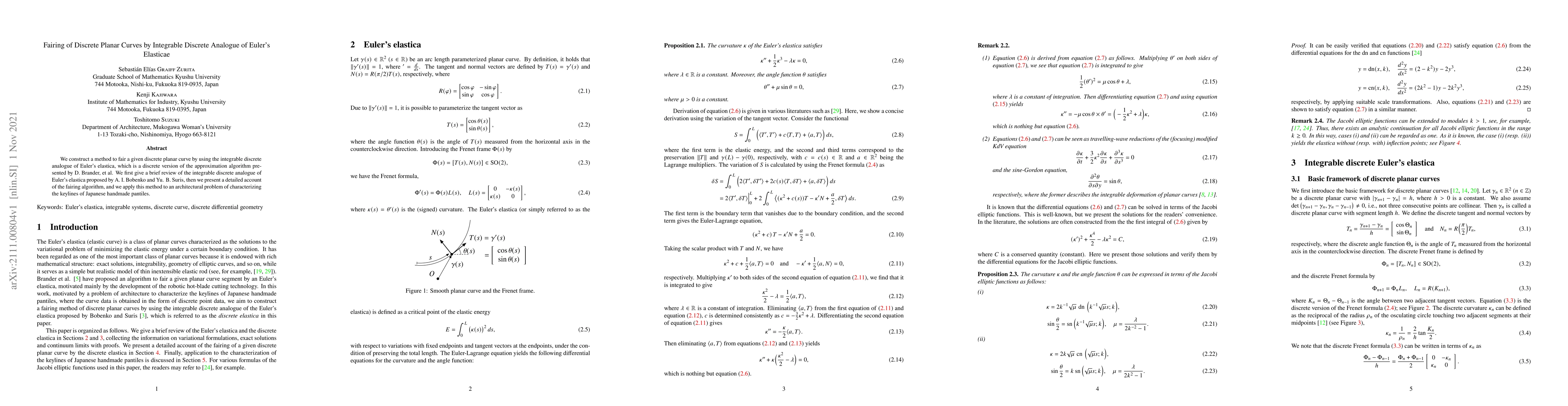 The paper introduces an integrable discrete analogue of Euler's elastica for fairing discrete planar curves, along with a variational formulation and optimization method using IPOPT.