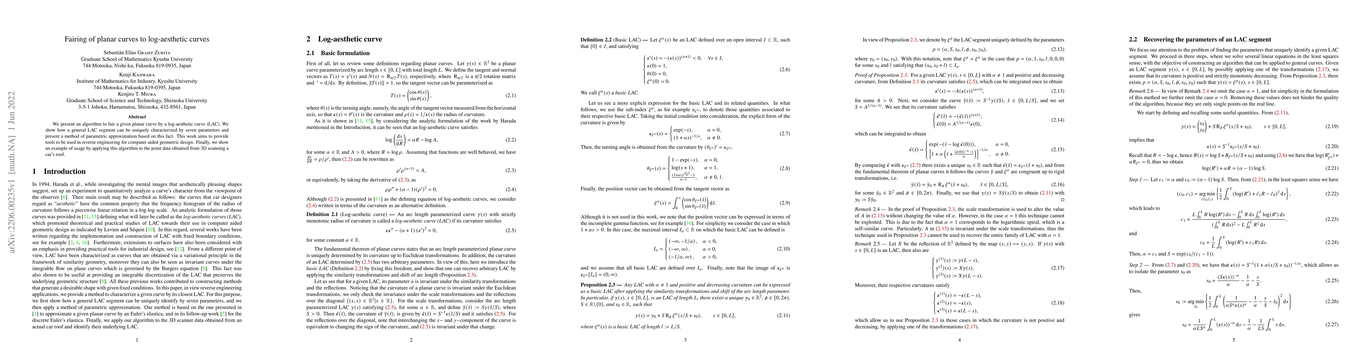 We present an algorithm to fair a given planar curve by a log-aesthetic curve (LAC). We show how a general LAC segment can be uniquely characterized by seven parameters and present a method of parametric approximation based on this fact. This work aims to provide tools to be used in reverse engineering for computer aided geometric design. Finally, we show an example of usage by applying this algorithm to the point data obtained from 3D scanning a car's roof.
