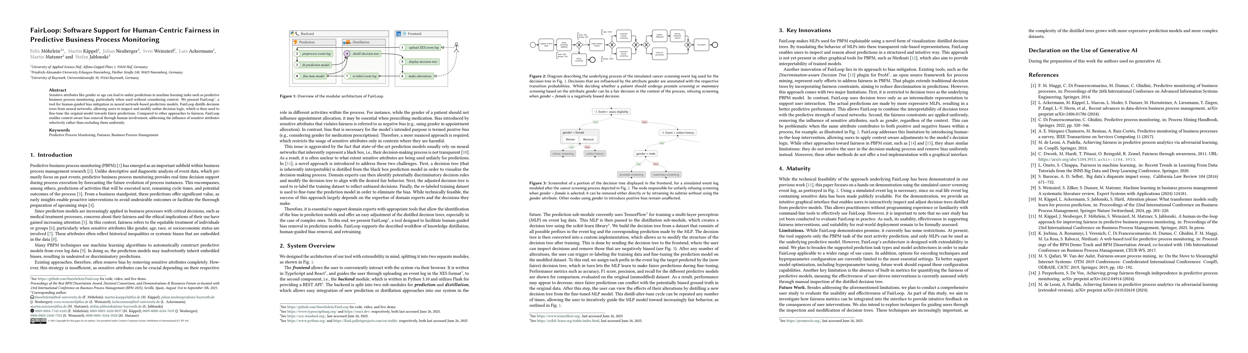 Sensitive attributes like gender or age can lead to unfair predictions in machine learning tasks such as predictive business process monitoring, particularly when used without considering context. We present FairLoop1, a tool for human-guided bias mitigation in neural network-based prediction models. FairLoop distills decision trees from neural networks, allowing users to inspect and modify unfair decision logic, which is then used to fine-tune the original model towards fairer predictions. Compared to other approaches to fairness, FairLoop enables context-aware bias removal through human involvement, addressing the influence of sensitive attributes selectively rather than excluding them uniformly.