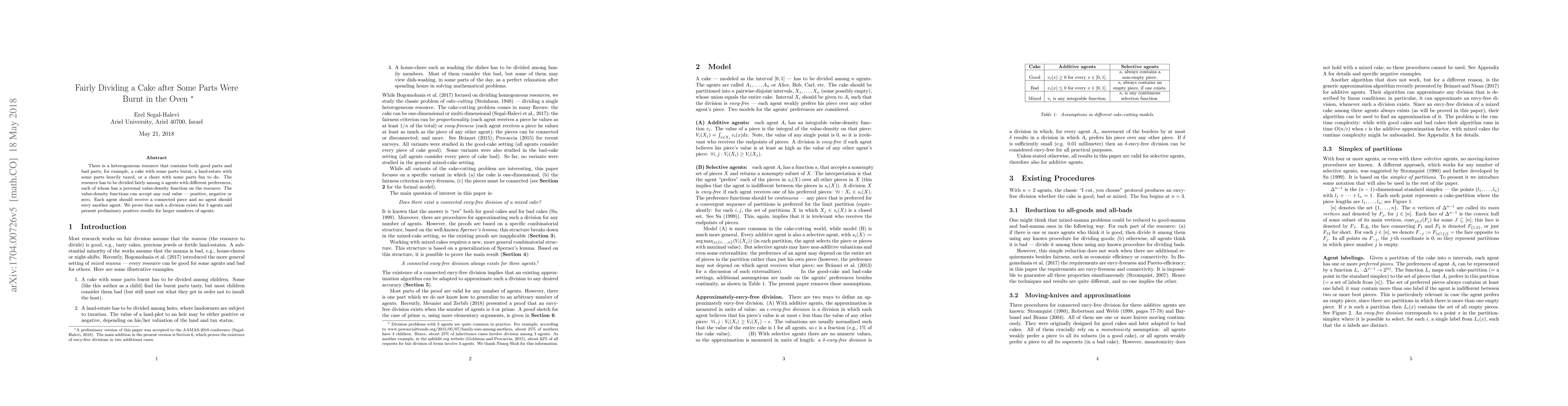 There is a heterogeneous resource that contains both good parts and bad parts, for example, a cake with some parts burnt, a land-estate with some parts heavily taxed, or a chore with some parts fun to do. The resource has to be divided fairly among $n$ agents with different preferences, each of whom has a personal value-density function on the resource. The value-density functions can accept any real value --- positive, negative or zero. Each agent should receive a connected piece and no agent should envy another agent. We prove that such a division exists for 3 agents and present preliminary positive results for larger numbers of agents.