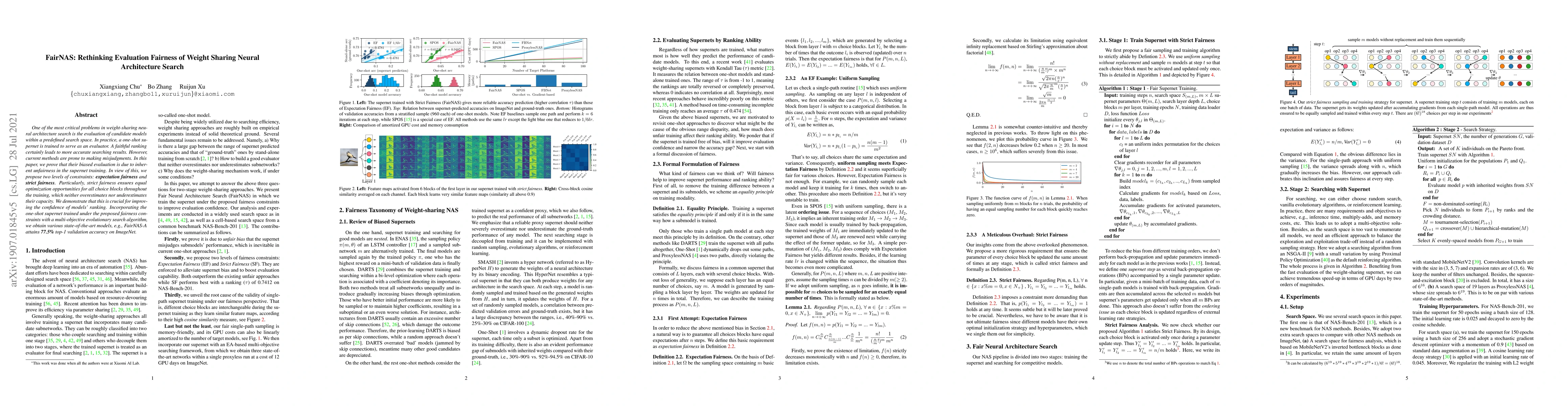 FairNAS addresses the inherent unfairness in evaluating neural architecture search through weight-sharing methods, introducing fairness constraints to ensure unbiased model ranking. The proposed strict fairness training of the supernet, combined with a multi-objective search algorithm, achieves state-of-the-art performance, exemplified by FairNAS-A's 77.5% top-1 accuracy on ImageNet.