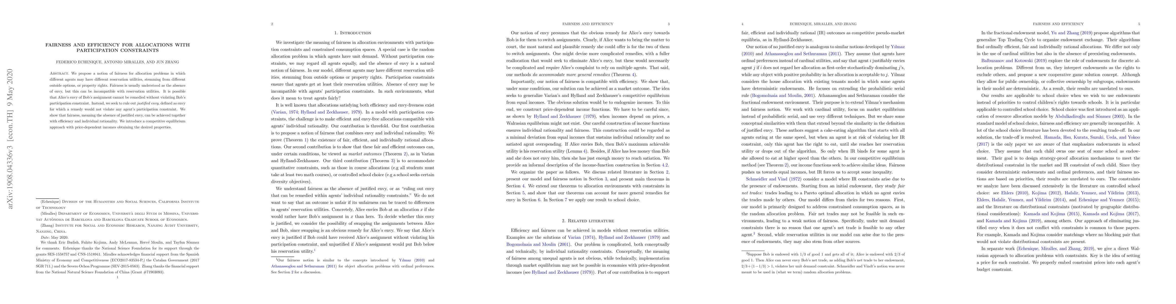 This paper proposes a fairness criterion that balances individual rationality with efficiency in allocation problems, where agents have different reservation utilities. It introduces a competitive equilibrium approach to achieve fairness without violating participation constraints or individual rationality.