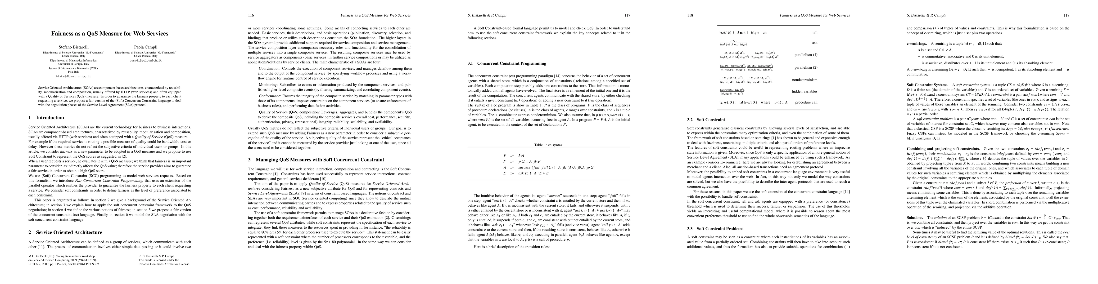 This paper proposes a fair QoS measure for web services in SOAs, introducing a fair version of the Soft Concurrent Constraint language to manage negotiation phases in the SLA protocol, ensuring equitable service distribution among clients.