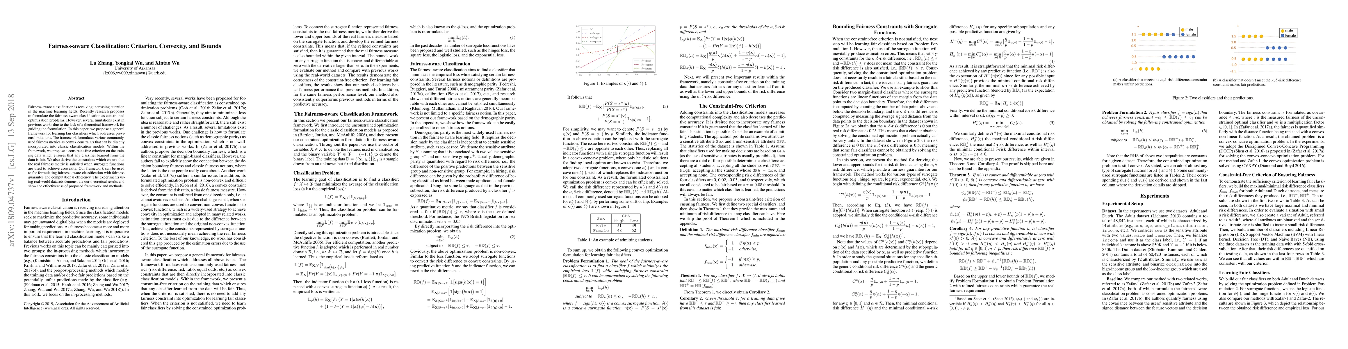 This paper proposes a theoretical framework for fairness-aware classification, addressing previous limitations by introducing convex constraints for commonly-used fairness metrics and ensuring that classifiers are fair when trained on appropriate data. Experiments on real-world datasets validate the effectiveness of the proposed methods.