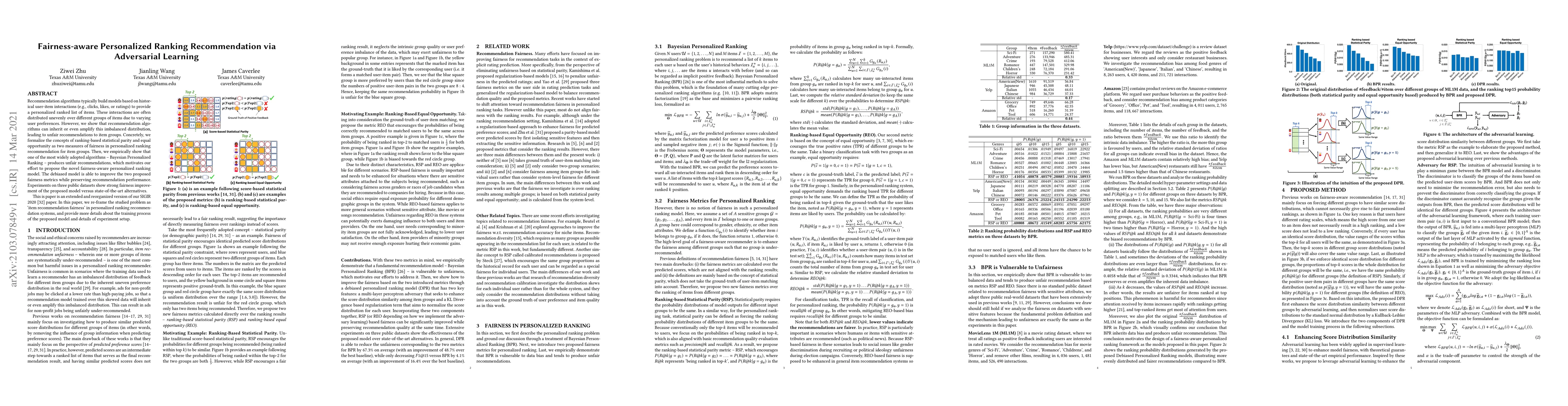 This paper proposes a fairness-aware personalized ranking recommendation model using adversarial learning to address imbalances in recommendation algorithms that can lead to unfair treatment of different item groups. The model improves on two fairness metrics while maintaining recommendation performance, as demonstrated on three public datasets.