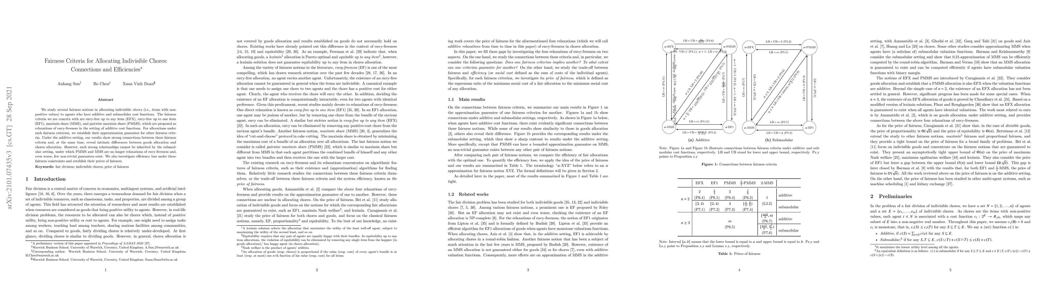 This paper explores fairness criteria for allocating indivisible chores to agents with cost functions, establishing connections and efficiencies among envy-freeness, maximin share, and other fairness notions under additive and submodular settings. It reveals strong relationships in the additive setting but finds limited guarantees in the submodular setting, along with an analysis of efficiency losses.