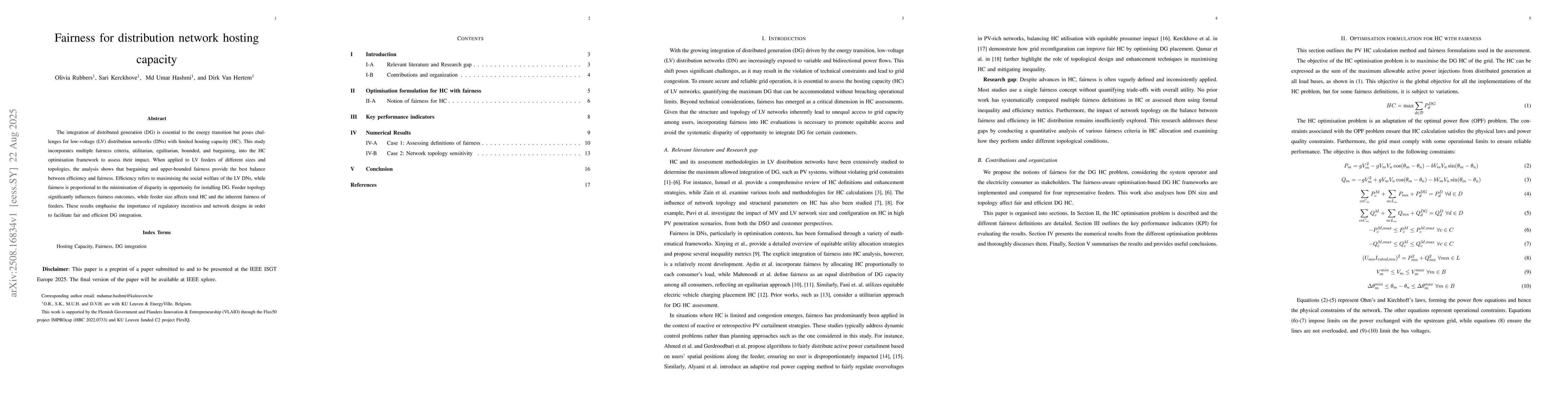 The integration of distributed generation (DG) is essential to the energy transition but poses challenges for lowvoltage (LV) distribution networks (DNs) with limited hosting capacity (HC). This study incorporates multiple fairness criteria, utilitarian, egalitarian, bounded, and bargaining, into the HC optimisation framework to assess their impact. When applied to LV feeders of different sizes and topologies, the analysis shows that bargaining and upper-bounded fairness provide the best balance between efficiency and fairness. Efficiency refers to maximising the social welfare of the LV DNs, while fairness is proportional to the minimisation of disparity in opportunity for installing DG. Feeder topology significantly influences fairness outcomes, while feeder size affects total HC and the inherent fairness of feeders. These results emphasise the importance of regulatory incentives and network designs in order to facilitate fair and efficient DG integration.
