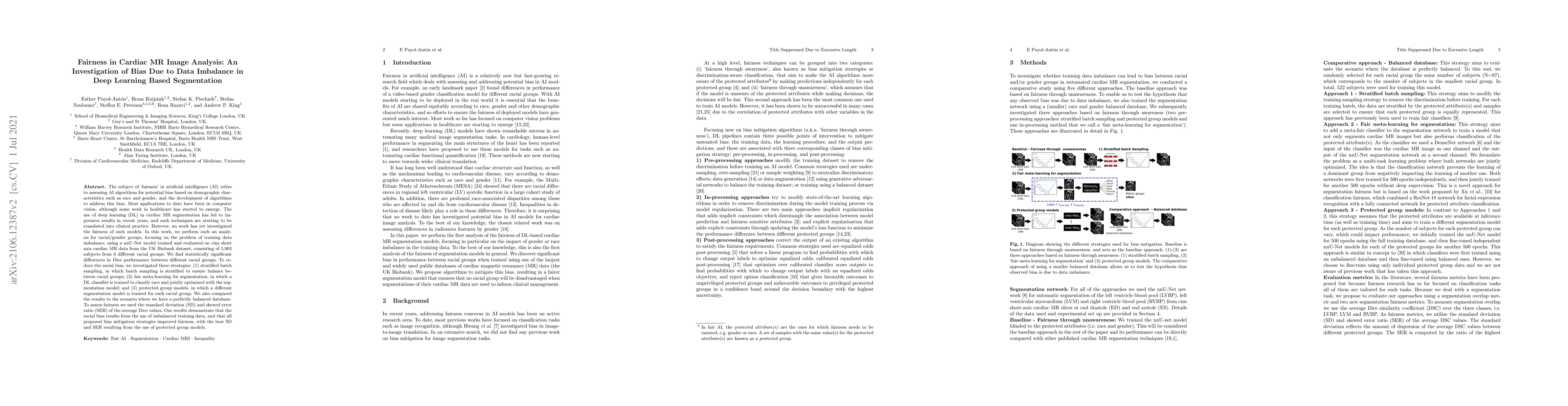 Deep learning models for cardiac MR image analysis exhibit racial bias due to training data imbalance. New strategies like stratified batch sampling, fair meta-learning, and protected group models improve fairness in segmentation results.