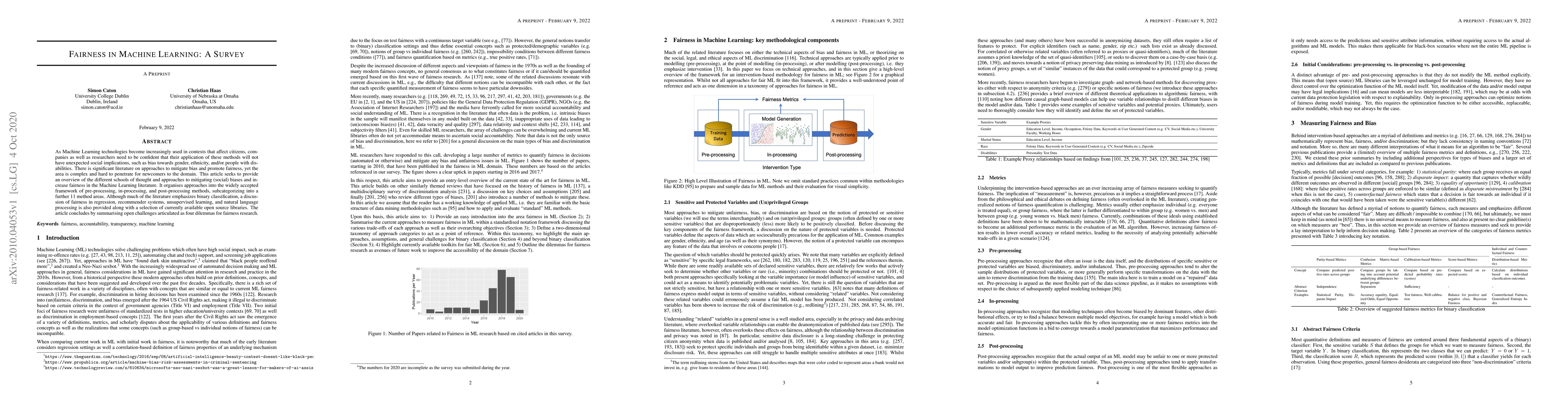 As Machine Learning technologies become increasingly used in contexts that affect citizens, companies as well as researchers need to be confident that their application of these methods will not have unexpected social implications, such as bias towards gender, ethnicity, and/or people with disabilities. There is significant literature on approaches to mitigate bias and promote fairness, yet the area is complex and hard to penetrate for newcomers to the domain. This article seeks to provide an overview of the different schools of thought and approaches to mitigating (social) biases and increase fairness in the Machine Learning literature. It organises approaches into the widely accepted framework of pre-processing, in-processing, and post-processing methods, subcategorizing into a further 11 method areas. Although much of the literature emphasizes binary classification, a discussion of fairness in regression, recommender systems, unsupervised learning, and natural language processing is also provided along with a selection of currently available open source libraries. The article concludes by summarising open challenges articulated as four dilemmas for fairness research.
