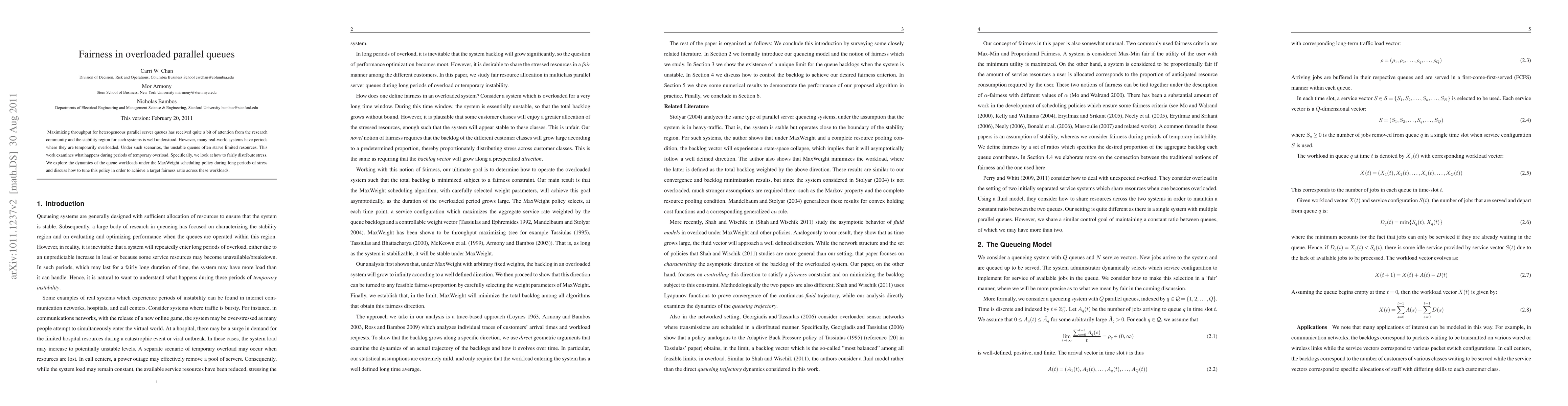 Maximizing throughput for heterogeneous parallel server queues has received quite a bit of attention from the research community and the stability region for such systems is well understood. However, many real-world systems have periods where they are temporarily overloaded. Under such scenarios, the unstable queues often starve limited resources. This work examines what happens during periods of temporary overload. Specifically, we look at how to fairly distribute stress. We explore the dynamics of the queue workloads under the MaxWeight scheduling policy during long periods of stress and discuss how to tune this policy in order to achieve a target fairness ratio across these workloads.