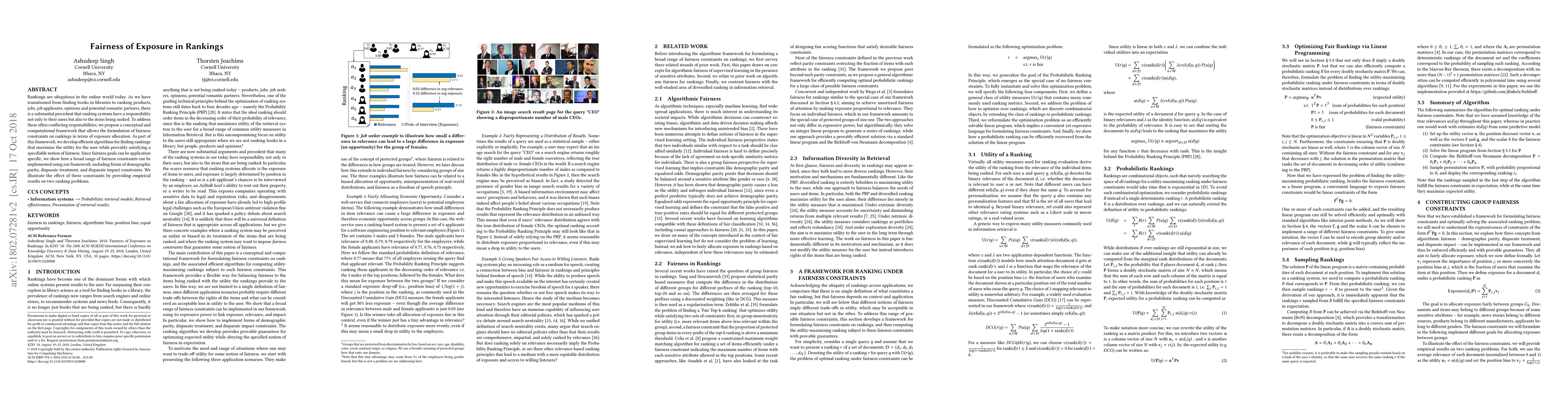 This paper proposes a framework for incorporating fairness constraints into ranking systems to balance user utility and fair exposure allocation. It presents algorithms to achieve rankings that satisfy various fairness criteria while maximizing user satisfaction, demonstrating its application through empirical results.