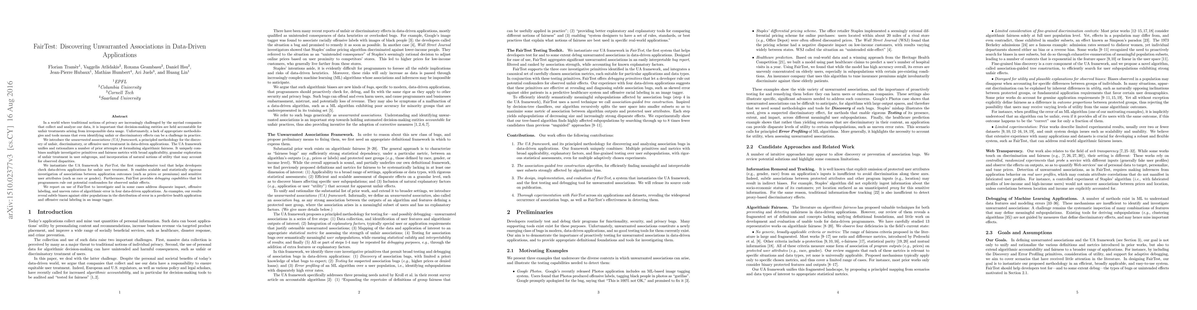 Researchers introduce FairTest, a tool to detect unfair associations in data-driven applications, revealing biases against older populations and offensive racial labeling in real-world examples.
