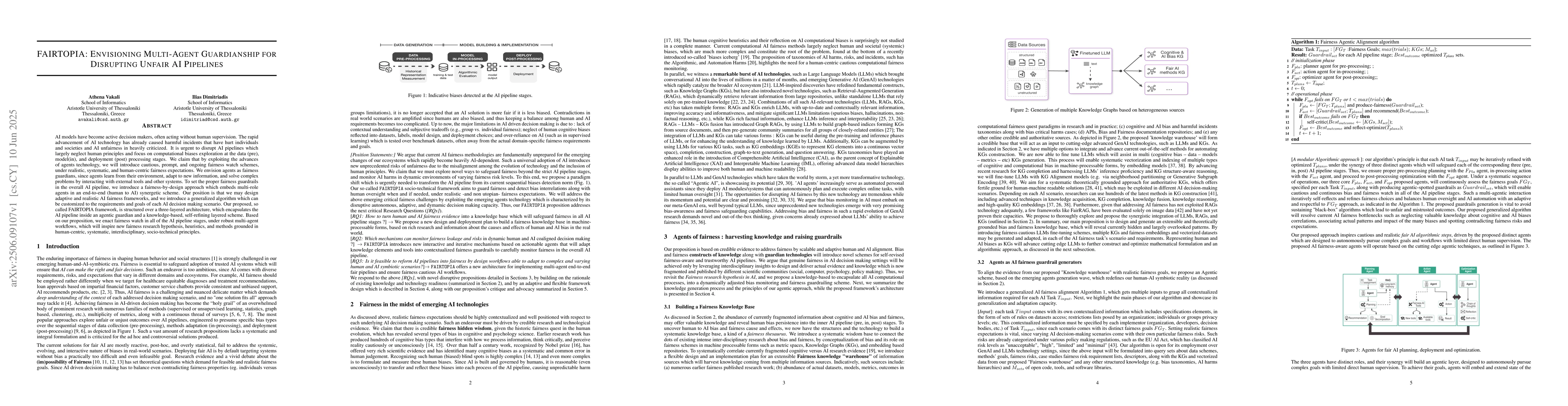 AI models have become active decision makers, often acting without human supervision. The rapid advancement of AI technology has already caused harmful incidents that have hurt individuals and societies and AI unfairness in heavily criticized. It is urgent to disrupt AI pipelines which largely neglect human principles and focus on computational biases exploration at the data (pre), model(in), and deployment (post) processing stages. We claim that by exploiting the advances of agents technology, we will introduce cautious, prompt, and ongoing fairness watch schemes, under realistic, systematic, and human-centric fairness expectations. We envision agents as fairness guardians, since agents learn from their environment, adapt to new information, and solve complex problems by interacting with external tools and other systems. To set the proper fairness guardrails in the overall AI pipeline, we introduce a fairness-by-design approach which embeds multi-role agents in an end-to-end (human to AI) synergetic scheme. Our position is that we may design adaptive and realistic AI fairness frameworks, and we introduce a generalized algorithm which can be customized to the requirements and goals of each AI decision making scenario. Our proposed, so called FAIRTOPIA framework, is structured over a three-layered architecture, which encapsulates the AI pipeline inside an agentic guardian and a knowledge-based, self-refining layered scheme. Based on our proposition, we enact fairness watch in all of the AI pipeline stages, under robust multi-agent workflows, which will inspire new fairness research hypothesis, heuristics, and methods grounded in human-centric, systematic, interdisciplinary, socio-technical principles.