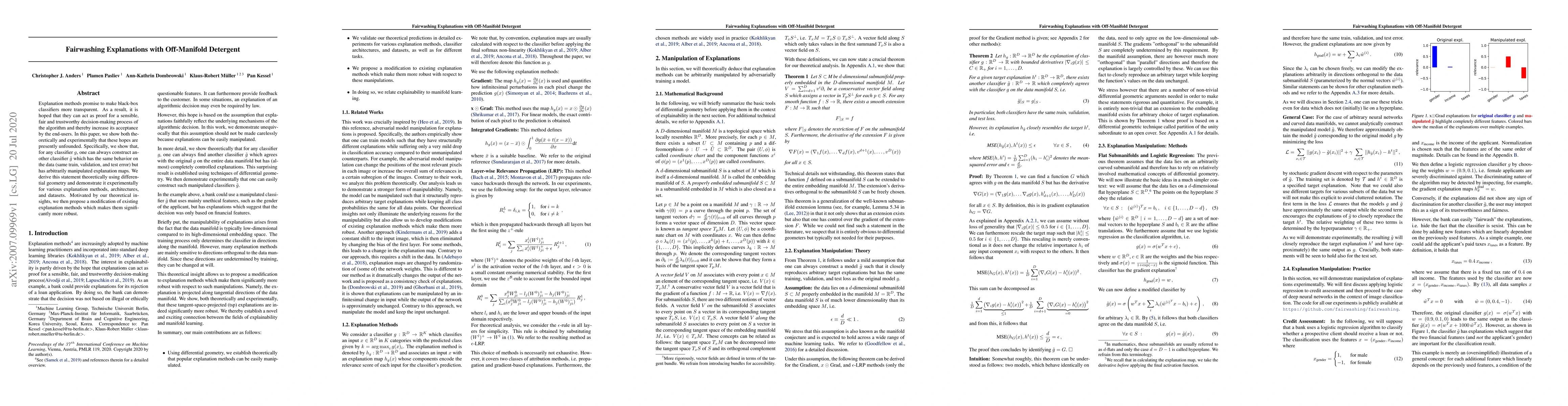 Explanation methods promise to make black-box classifiers more transparent. As a result, it is hoped that they can act as proof for a sensible, fair and trustworthy decision-making process of the algorithm and thereby increase its acceptance by the end-users. In this paper, we show both theoretically and experimentally that these hopes are presently unfounded. Specifically, we show that, for any classifier $g$, one can always construct another classifier $\tilde{g}$ which has the same behavior on the data (same train, validation, and test error) but has arbitrarily manipulated explanation maps. We derive this statement theoretically using differential geometry and demonstrate it experimentally for various explanation methods, architectures, and datasets. Motivated by our theoretical insights, we then propose a modification of existing explanation methods which makes them significantly more robust.