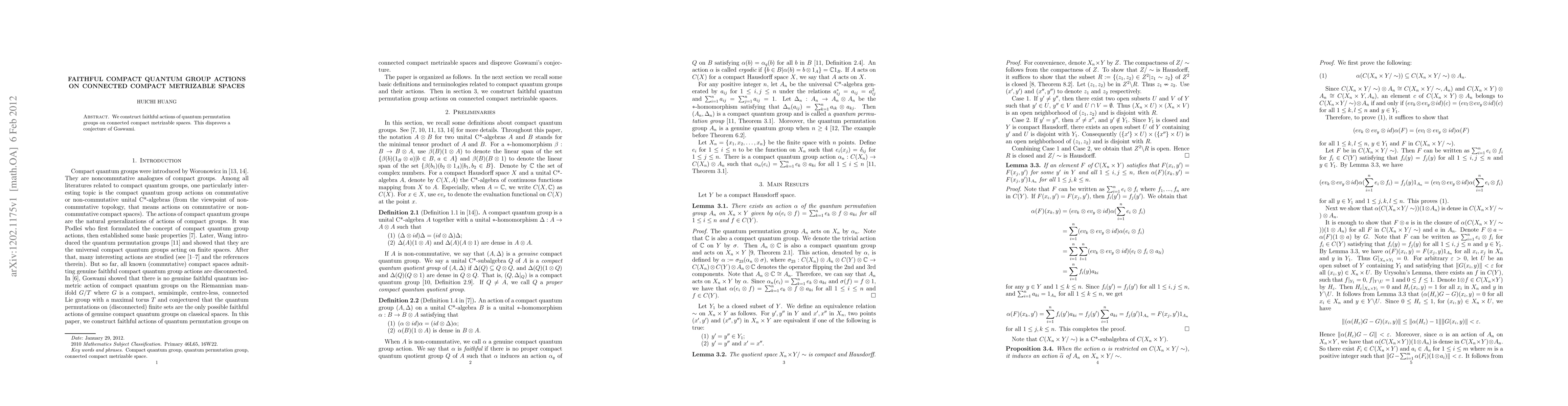 The paper introduces a method for constructing faithful actions of quantum permutation groups on connected compact metrizable spaces, utilizing compact quantum groups and their universal C*-algebras.