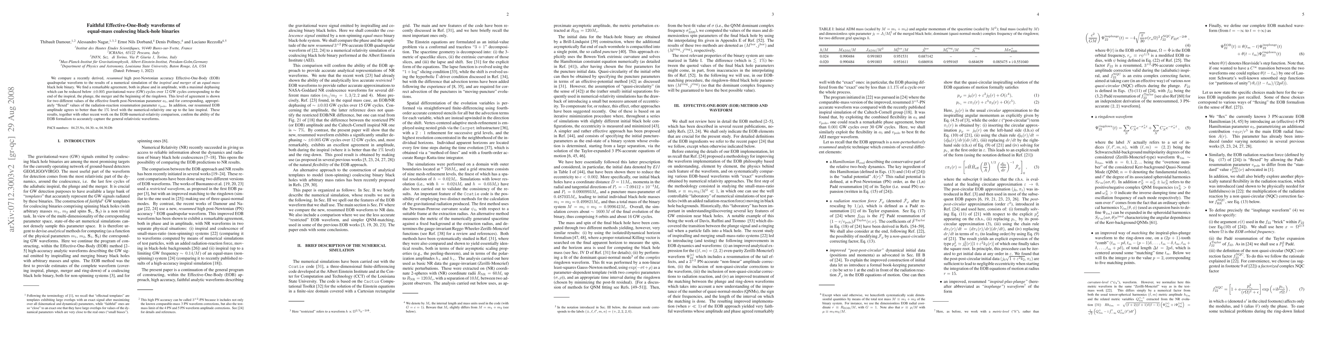 This study advances the Effective-One-Body (EOB) approach by deriving high-accuracy analytic waveforms for coalescing black hole binaries, demonstrating remarkable agreement with numerical simulations in both phase and amplitude. The EOB model shows excellent fidelity, with a maximal dephasing below $\pm 0.005$ GW cycles and amplitude accuracy within 1% up to the late inspiral, confirming its reliability.
