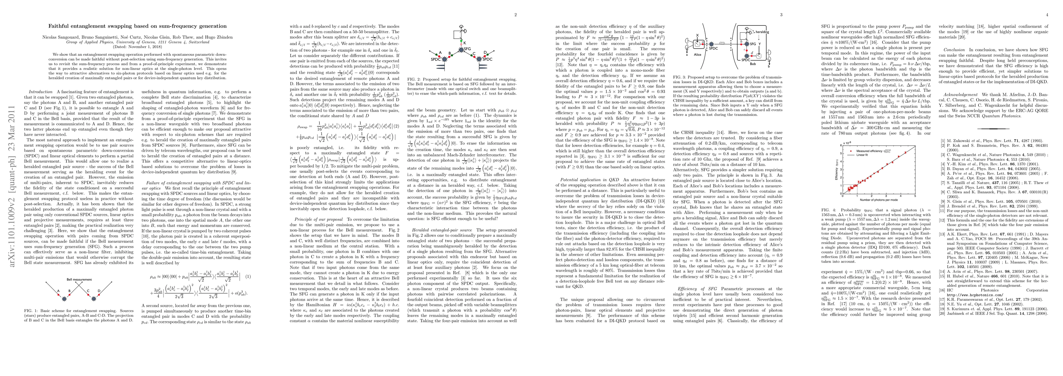 We show that the entanglement resulting from an entanglement swapping operation performed with spontaneous parametric down-conversion can be made faithful without post-selection using sum-frequency generation. This invites us to revisit the sum-frequency process and from a proof-of-principle experiment, we demonstrate that it provides a realistic solution for non-linear optics at the single-photon level. This opens the way to attractive alternatives to six-photon protocols based on linear optics used e.g. for the heralded creation of maximally entangled pairs or for the implementation of device-independent quantum key distribution.