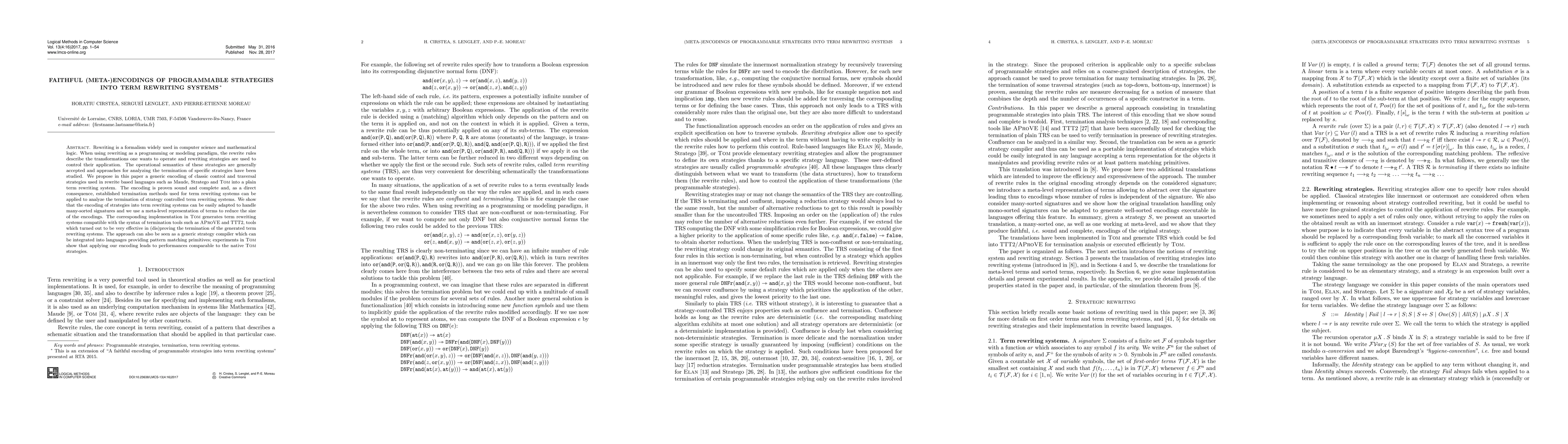 This paper proposes a sound and complete encoding of programmable strategies into term rewriting systems, enabling the application of established termination analysis tools to strategy-controlled term rewriting. The encoding is adaptable to many-sorted signatures and uses meta-level representations to minimize size, demonstrating comparable performance in the Tom language.