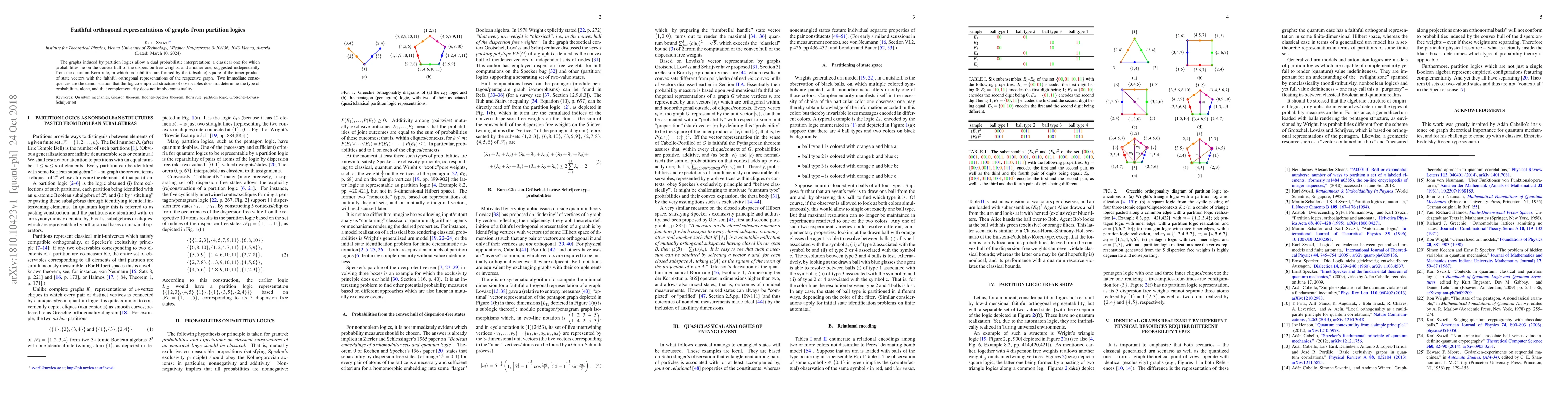 The graphs induced by partition logics allow a dual probabilistic interpretation: a classical one for which probabilities lie on the convex hull of the dispersion-free weights, and another one, suggested independently from the quantum Born rule, in which probabilities are formed by the (absolute) square of the inner product of state vectors with the faithful orthogonal representations of the respective graph. Two immediate consequences are the demonstration that the logico-empirical structure of observables does not determine the type of probabilities alone, and that complementarity does not imply contextuality.