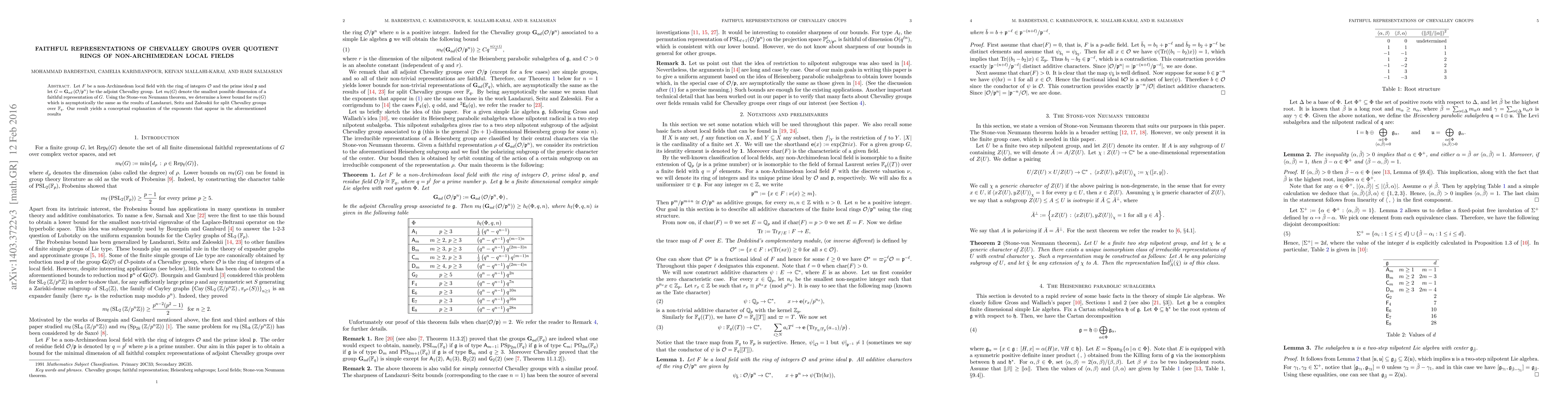 Let $F$ be a non-Archimedean local field with the ring of integers $\mathcal{O}$ and the prime ideal $\mathfrak{p}$ and let $G={\bf G}\left(\mathcal{O}/\mathfrak{p}^n\right)$ be the adjoint Chevalley group. Let $m_f(G)$ denote the smallest possible dimension of a faithful representation of $G$. Using the Stone-von Neumann theorem, we determine a lower bound for $m_f(G)$ which is asymptotically the same as the results of Landazuri, Seitz and Zalesskii for split Chevalley groups over $\mathbb{F}_q$. Our result yields a conceptual explanation of the exponents that appear in the aforementioned results