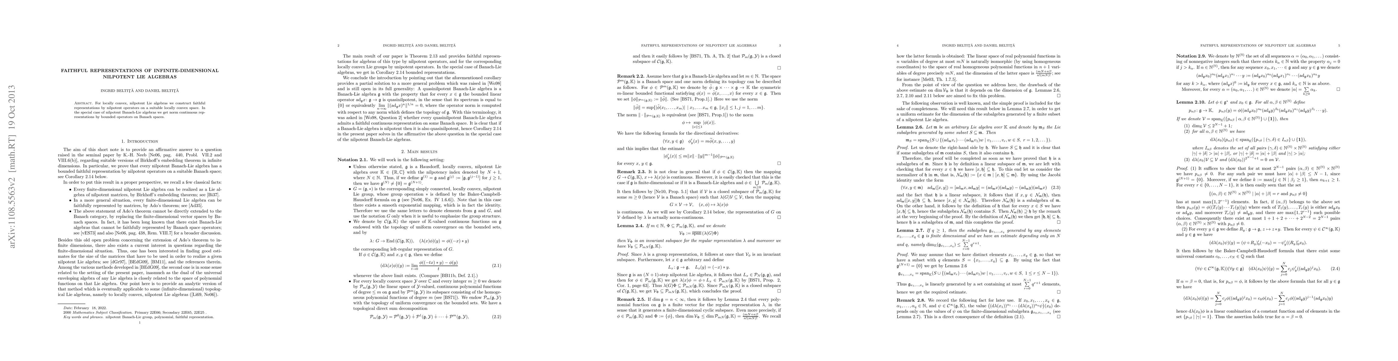 This paper constructs faithful representations of locally convex, nilpotent Lie algebras using nilpotent operators on a suitable locally convex space, with norm continuous representations by bounded operators for nilpotent Banach-Lie algebras.