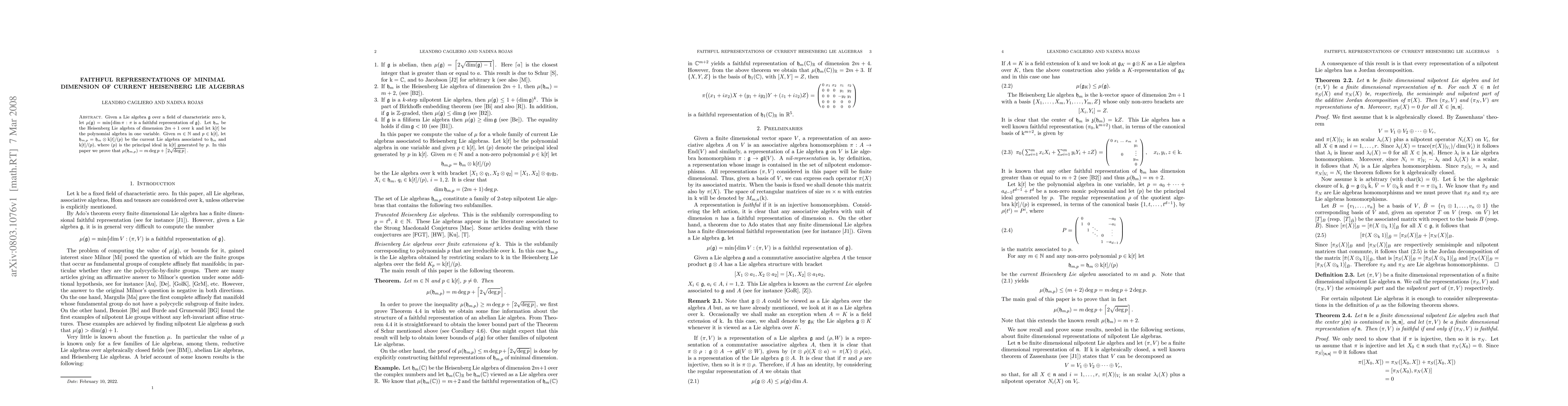 This research paper proves that the minimal dimension of a faithful representation of a current Heisenberg Lie algebra is m times the degree of its associated polynomial plus the ceiling of 2 times the square root of its degree.