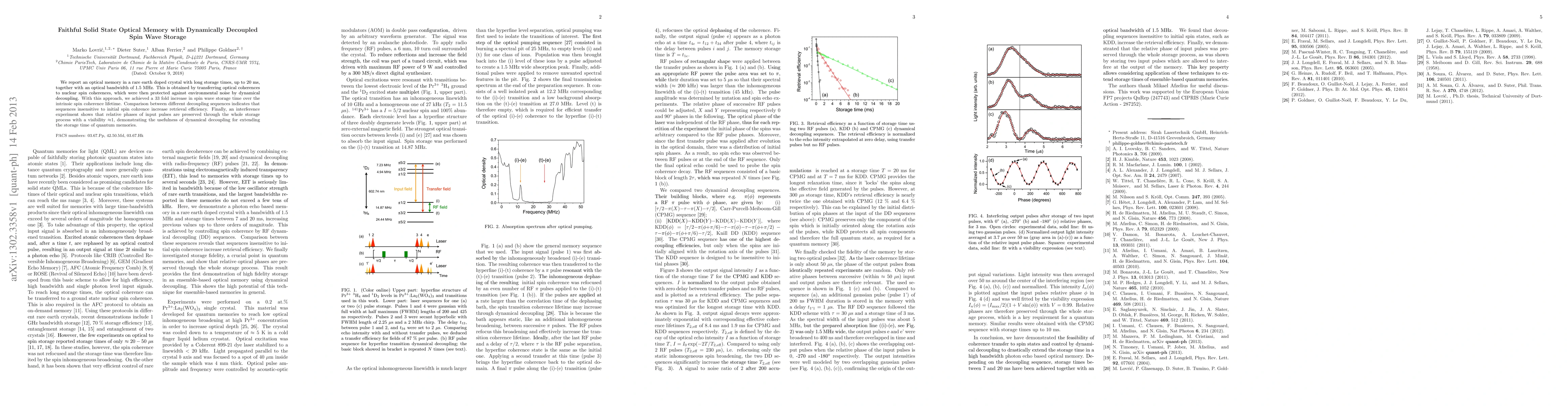 This paper presents a novel optical memory system in a rare earth doped crystal that utilizes nuclear spin coherences for storage, achieving long storage times up to 20 ms and a bandwidth of 1.5 MHz. Dynamical decoupling techniques significantly enhance spin wave storage by a factor of 33, preserving input pulse phases with high fidelity.