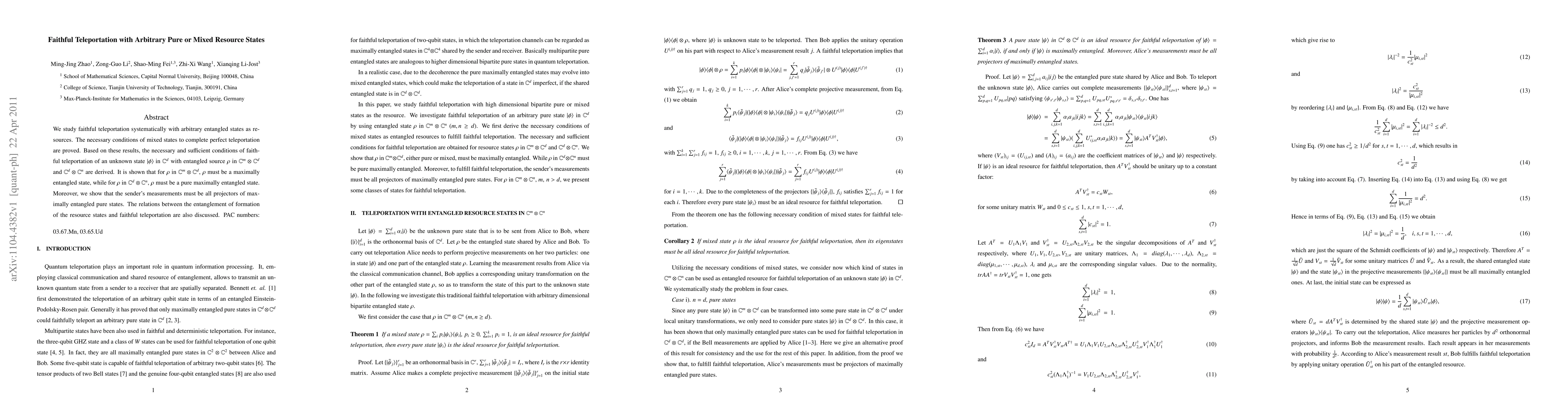 This paper investigates the conditions for faithful teleportation using arbitrary entangled states, proving that for perfect teleportation, the resource state must be maximally entangled. It derives necessary and sufficient conditions for the teleportation of an unknown state, emphasizing the role of the sender's measurements and the entanglement properties of the resource states.