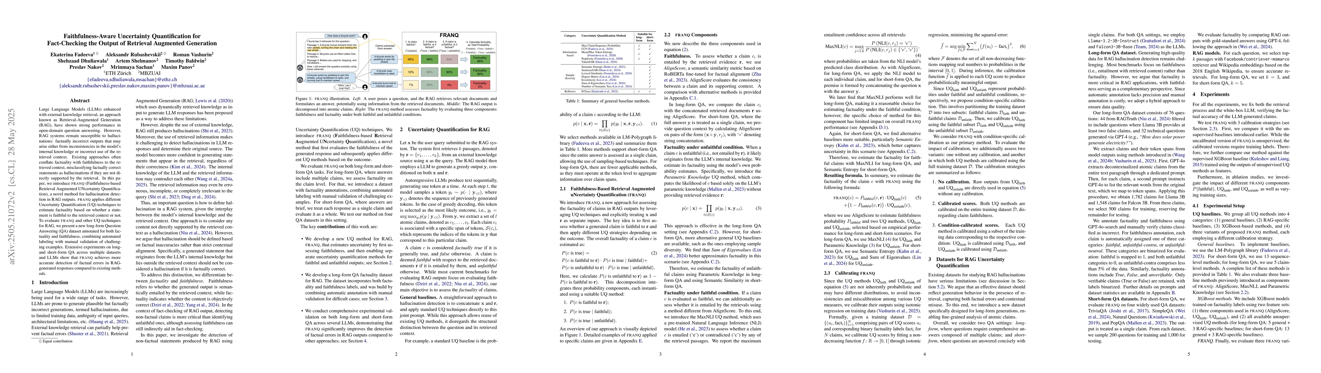 FRANQ, a novel hallucination detection method for RAG systems that uses Uncertainty Quantification techniques to assess faithfulness to retrieved context, distinguishing it from mere factuality.