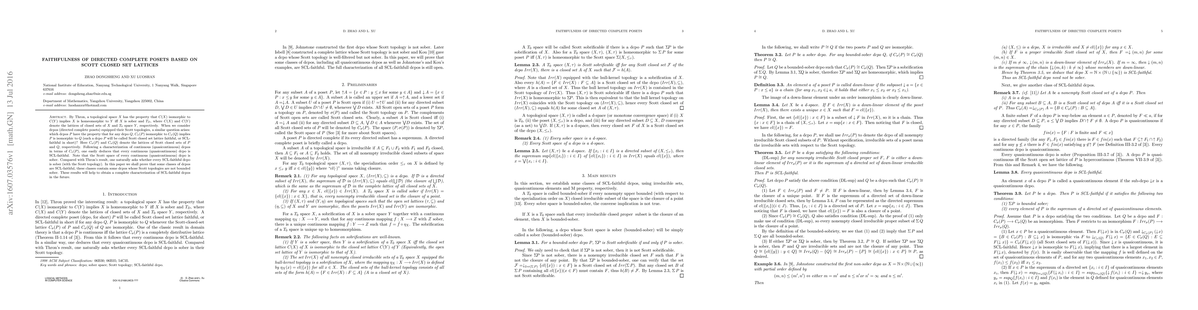 This paper investigates the faithfulness of directed complete posets (dcpos) under their Scott topologies, specifically focusing on Scott closed set lattice faithful (SCL-faithful) dcpos. The study proves that certain classes of dcpos are SCL-faithful, even when their Scott topologies are not bounded sober, thus contributing to the future complete characterization of SCL-faithful dcpos.
