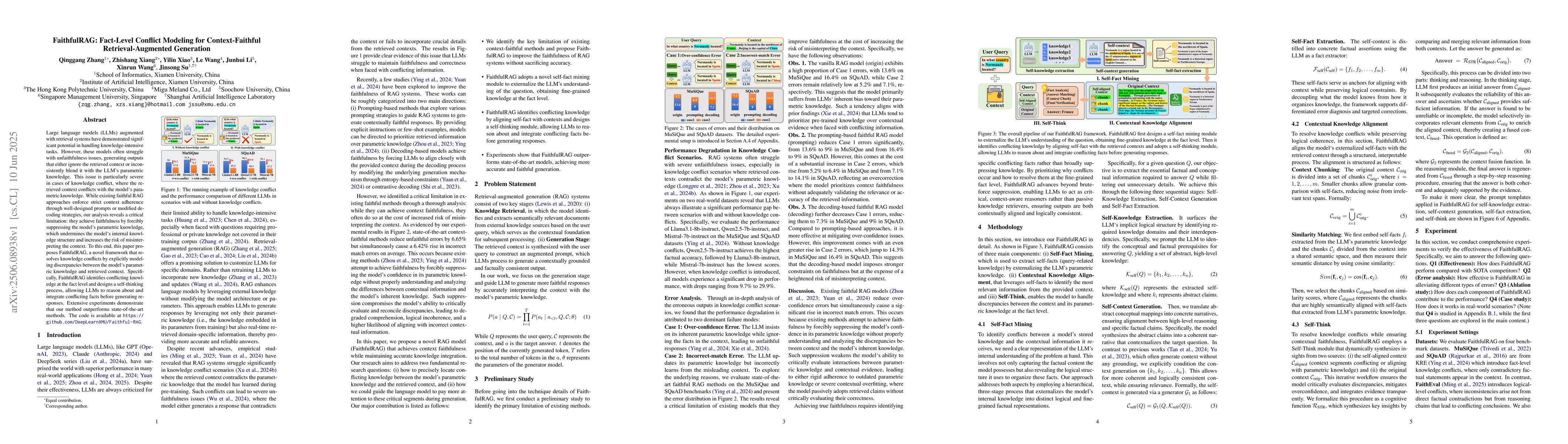 This paper proposes FaithfulRAG, a framework that resolves knowledge conflicts in language models by explicitly modeling discrepancies between parametric knowledge and retrieved context, outperforming state-of-the-art methods.