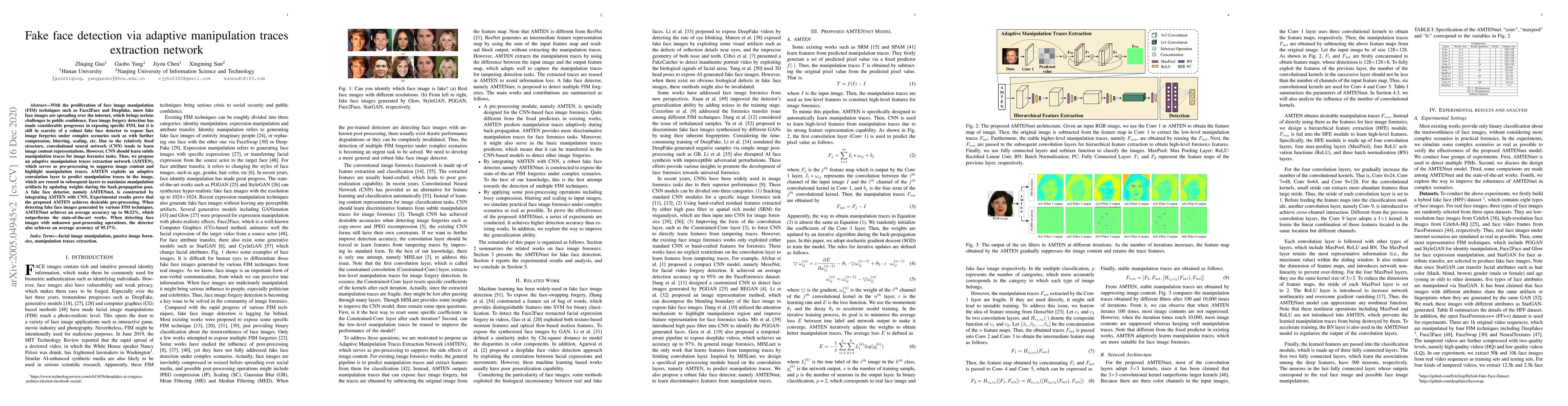 This research introduces an adaptive manipulation traces extraction network (AMTEN) designed to enhance the detection of manipulated face images, including those created by techniques like Face2Face and Deepfake. The proposed AMTENnet, which combines AMTEN with a convolutional neural network (CNN), demonstrates high accuracy in identifying fake faces, achieving an average detection rate of 98.52% across various manipulation techniques and 95.17% for images with unknown post-processing. For more details, please refer to the original paper.