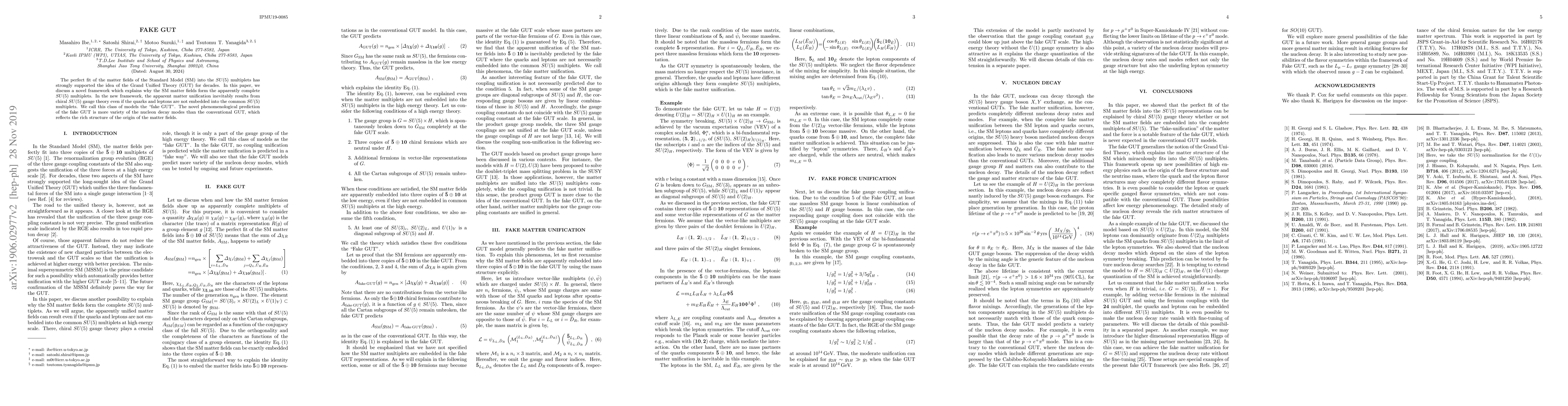 This paper introduces the "fake GUT" framework, which explains the apparent unification of Standard Model matter fields into $SU(5)$ multiplets without requiring them to be part of a common $SU(5)$ structure, predicting a greater variety of nucleon decay modes than conventional GUT models.