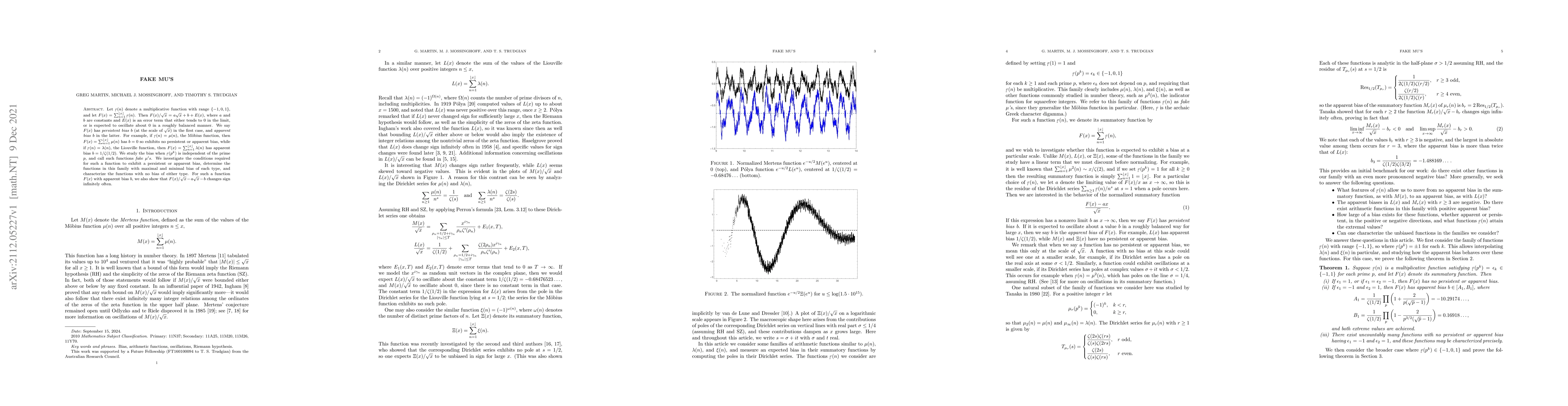 This paper investigates multiplicative functions $f(n)$ with values in $\{-1,0,1\}$, termed "fake Mu's," and their associated sums $F(x)$. It explores conditions under which these functions exhibit persistent or apparent bias, determining maximal and minimal bias cases and characterizing those with no bias. The study reveals that functions with apparent bias change sign infinitely often.