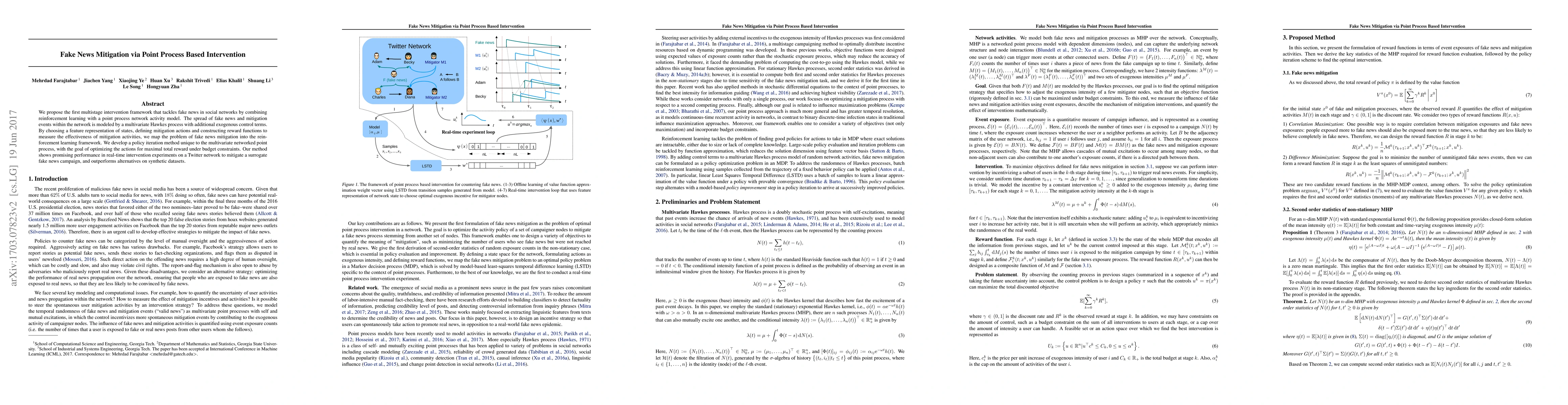 This research introduces a multistage intervention framework that uses reinforcement learning and a multivariate Hawkes process to model and mitigate the spread of fake news in social networks. The proposed method outperforms alternatives in real-time intervention experiments on Twitter and synthetic datasets.