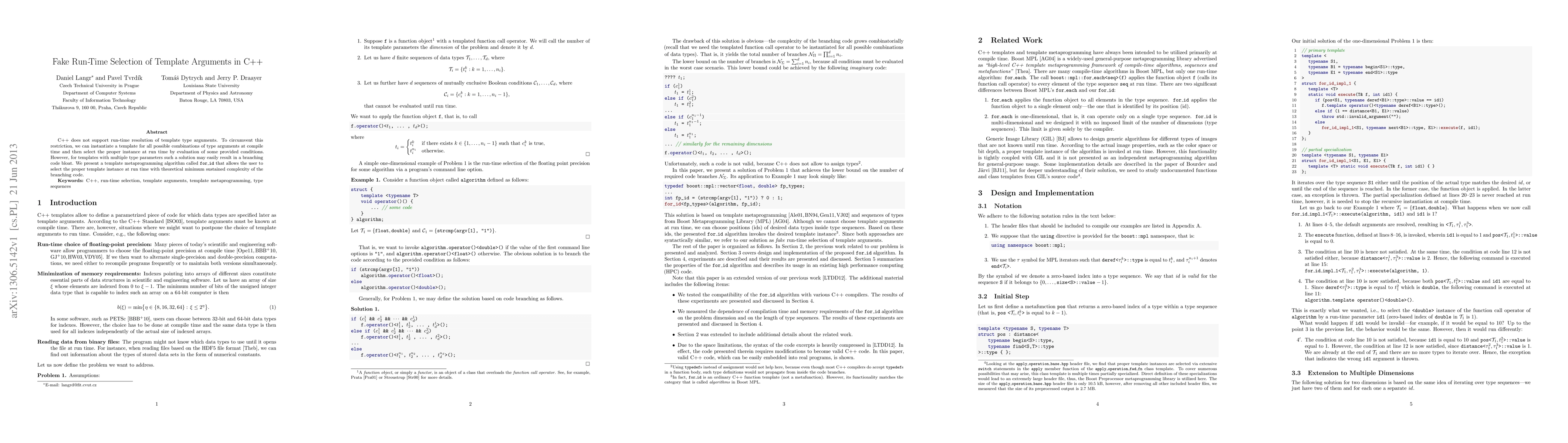 This paper proposes a template metaprogramming algorithm called for_id to select the appropriate template instance at runtime in C++, addressing the language's lack of run-time resolution for template type arguments. It aims to minimize the complexity and branching code bloat typically associated with such solutions.