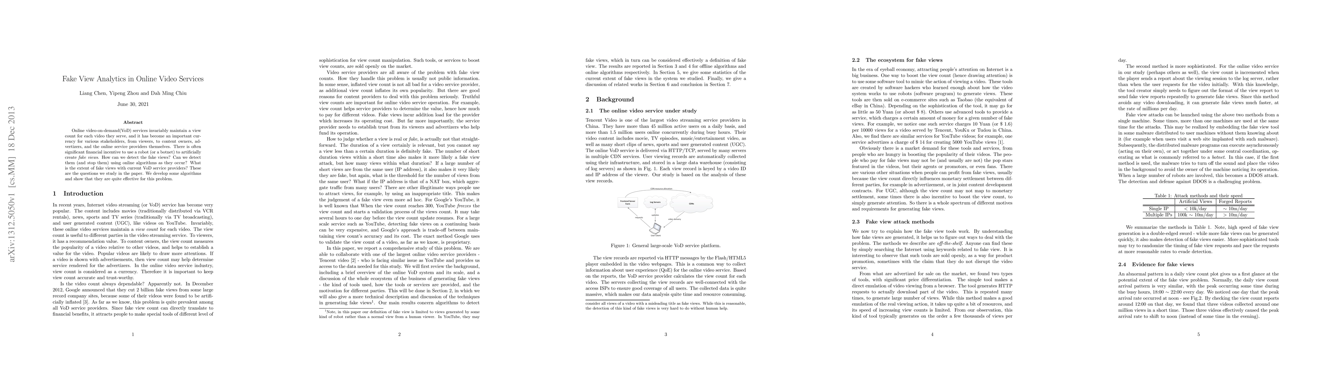 This paper investigates the detection of fake views in online video-on-demand services, analyzing the financial incentives behind artificially inflating view counts. The authors propose and evaluate effective online algorithms capable of identifying and mitigating these fraudulent activities in real-time.