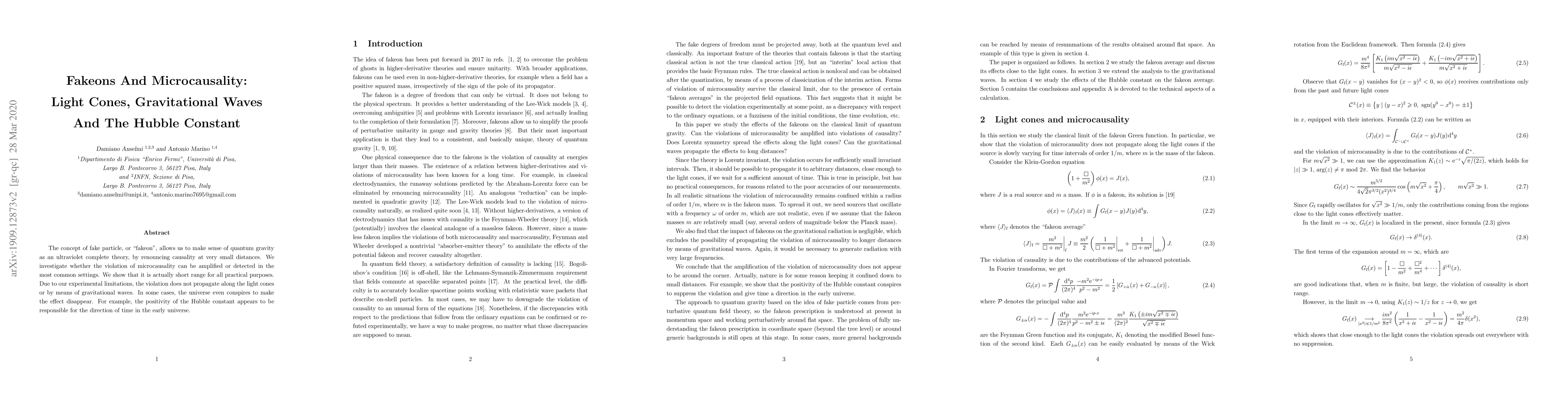 Summary: This paper explores the implications of fakeons in quantum gravity, demonstrating that microcausality violations are short-ranged and practically undetectable due to experimental limitations. It concludes that these violations do not propagate via light cones or gravitational waves, and the positivity of the Hubble constant may even influence the direction of time in the early universe.