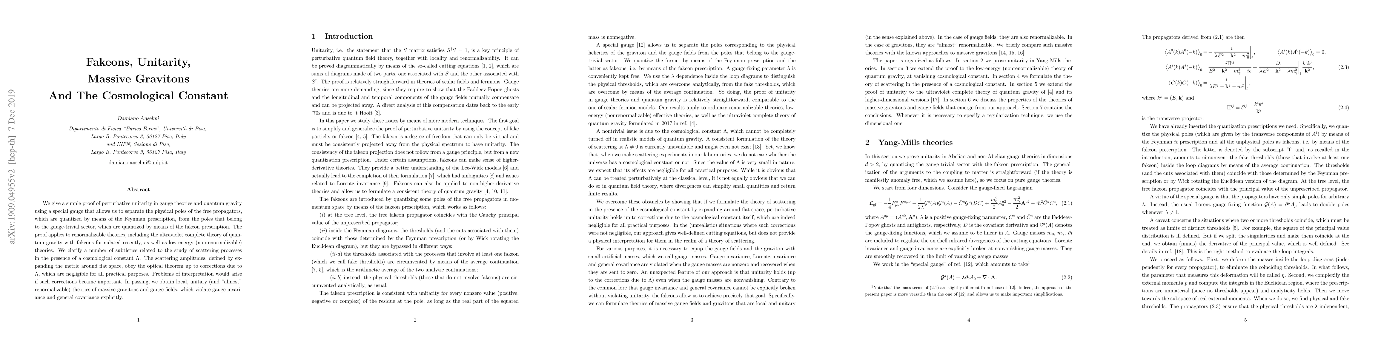 This paper presents a method to prove perturbative unitarity in gauge theories and quantum gravity using a special gauge that distinguishes physical poles from gauge-trivial ones, allowing for the quantization of massive gravitons and gauge fields. The approach also addresses scattering processes in the presence of a cosmological constant, ensuring unitarity and negligible corrections for practical purposes.