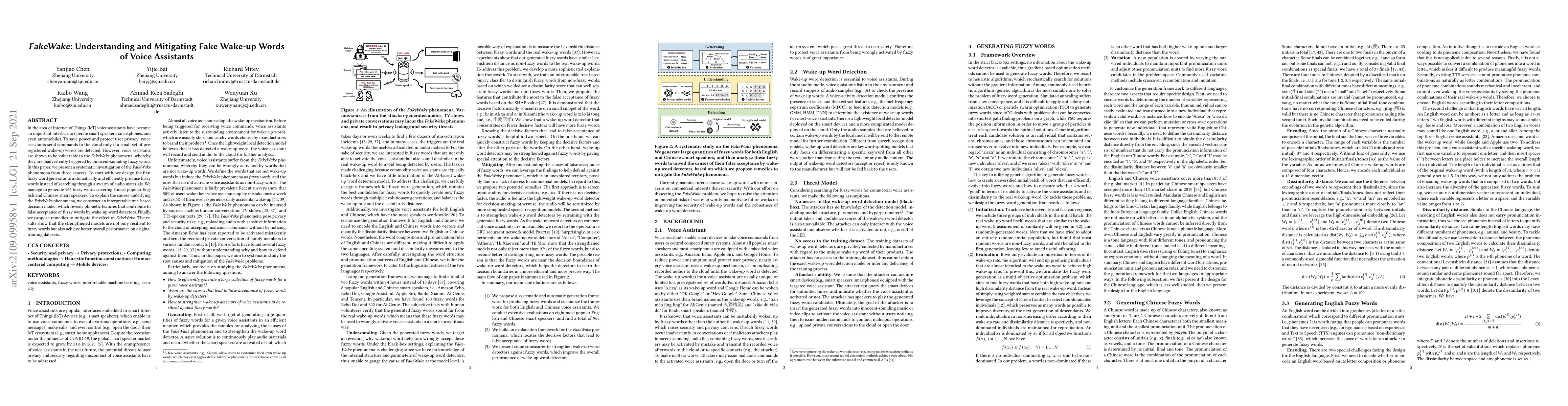 In the area of Internet of Things (IoT) voice assistants have become an important interface to operate smart speakers, smartphones, and even automobiles. To save power and protect user privacy, voice assistants send commands to the cloud only if a small set of pre-registered wake-up words are detected. However, voice assistants are shown to be vulnerable to the FakeWake phenomena, whereby they are inadvertently triggered by innocent-sounding fuzzy words. In this paper, we present a systematic investigation of the FakeWake phenomena from three aspects. To start with, we design the first fuzzy word generator to automatically and efficiently produce fuzzy words instead of searching through a swarm of audio materials. We manage to generate 965 fuzzy words covering 8 most popular English and Chinese smart speakers. To explain the causes underlying the FakeWake phenomena, we construct an interpretable tree-based decision model, which reveals phonetic features that contribute to false acceptance of fuzzy words by wake-up word detectors. Finally, we propose remedies to mitigate the effect of FakeWake. The results show that the strengthened models are not only resilient to fuzzy words but also achieve better overall performance on original training datasets.