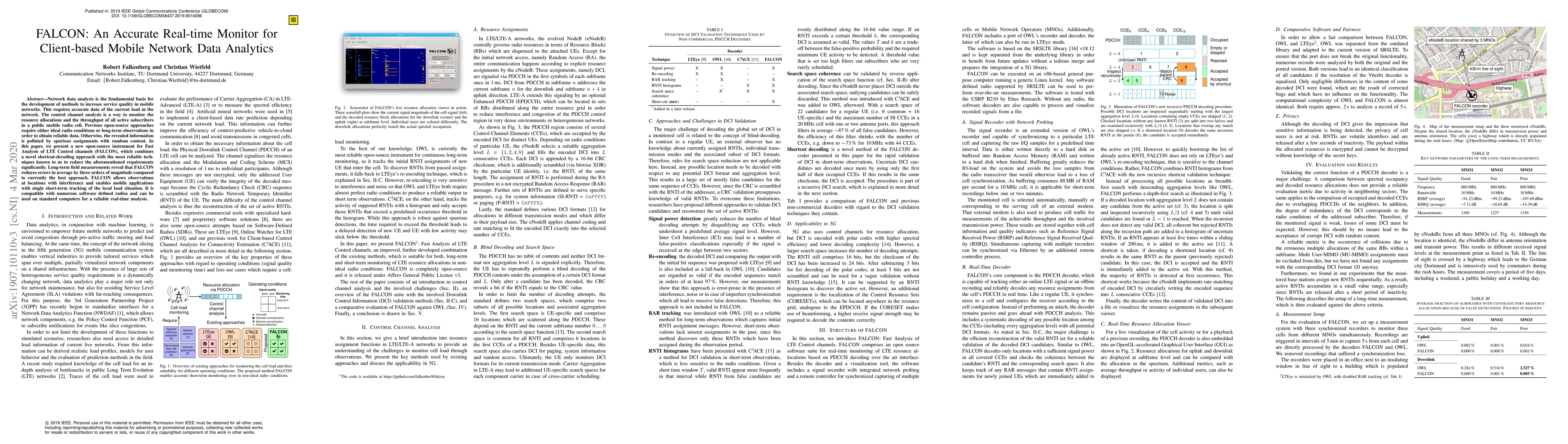 Network data analysis is the fundamental basis for the development of methods to increase service quality in mobile networks. This requires accurate data of the current load in the network. The control channel analysis is a way to monitor the resource allocations and the throughput of all active subscribers in a public mobile radio cell. Previous open-source approaches require either ideal radio conditions or long-term observations in order to obtain reliable data. Otherwise, the revealed information is polluted by spurious assignments with random content. In this paper, we present a new open-source instrument for Fast Analysis of LTE Control channels (FALCON), which combines a novel shortcut-decoding approach with the most reliable techniques known to us to reduce the aforementioned requirements significantly. Long-term field measurements reveal that FALCON reduces errors in average by three orders of magnitude compared to currently the best approach. FALCON allows observations at locations with interference and enables mobile applications with single short-term tracking of the local load situation. It is compatible with numerous software defined radios and can be used on standard computers for a reliable real-time analysis.