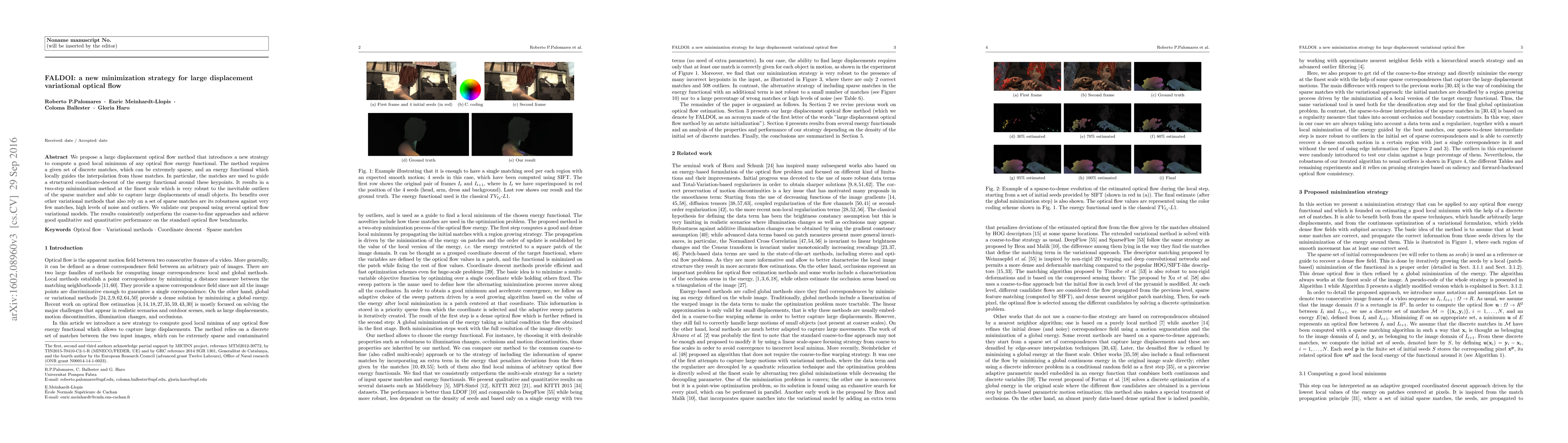 We propose a large displacement optical flow method that introduces a new strategy to compute a good local minimum of any optical flow energy functional. The method requires a given set of discrete matches, which can be extremely sparse, and an energy functional which locally guides the interpolation from those matches. In particular, the matches are used to guide a structured coordinate-descent of the energy functional around these keypoints. It results in a two-step minimization method at the finest scale which is very robust to the inevitable outliers of the sparse matcher and able to capture large displacements of small objects. Its benefits over other variational methods that also rely on a set of sparse matches are its robustness against very few matches, high levels of noise and outliers. We validate our proposal using several optical flow variational models. The results consistently outperform the coarse-to-fine approaches and achieve good qualitative and quantitative performance on the standard optical flow benchmarks.