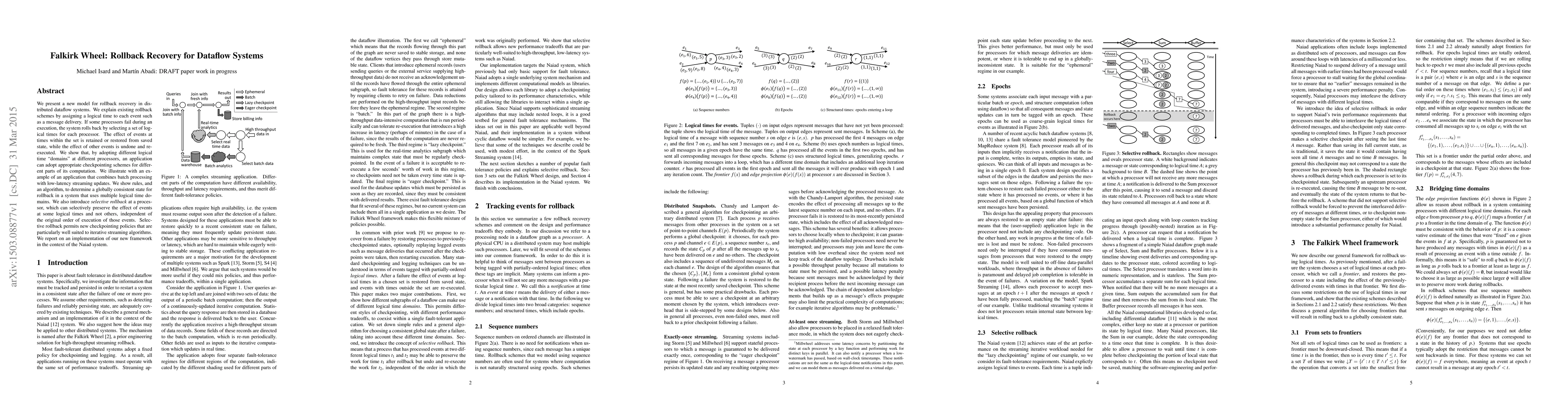 This paper introduces a novel rollback recovery model for distributed dataflow systems, utilizing different logical time domains for varied checkpointing strategies. It presents an algorithm for determining a globally consistent state during rollback and introduces selective rollback for optimized checkpointing in iterative streaming applications.