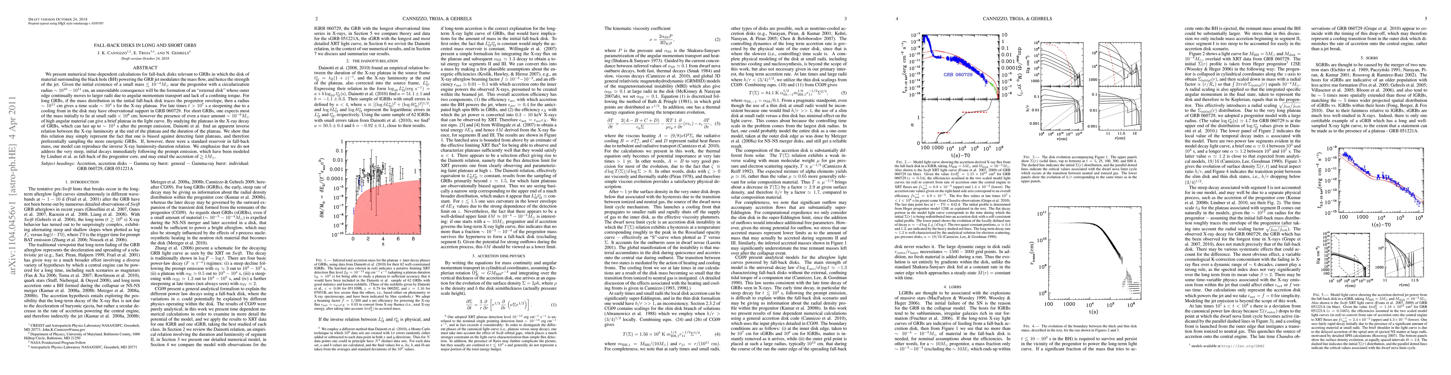We present numerical time-dependent calculations for fall-back disks relevant to GRBs in which the disk of material surrounding the black hole (BH) powering the GRB jet modulates the mass flow, and hence the strength of the jet. Given the initial existence of a small mass <10^{-4} msun near the progenitor with a circularization radius ~10^{10}-10^{11} cm, an unavoidable consequence will be the formation of an "external disk" whose outer edge continually moves to larger radii due to angular momentum transport and lack of a confining torque. For long GRBs, if the mass distribution in the initial fall-back disk traces the progenitor envelope, then a radius ~10^{11} cm gives a time scale ~10^4 s for the X-ray plateau. For late times t>10^7 s a steepening due to a cooling front in the disk may have observational support in GRB 060729. For short GRBs, one expects most of the mass initially to lie at small radii <10^8 cm; however the presence of even a trace amount ~10^{-9} msun of high angular momentum material can give a brief plateau in the light curve. By studying the plateaus in the X-ray decay of GRBs, which can last up to ~10^4 s after the prompt emission, Dainotti et al. find an apparent inverse relation between the X-ray luminosity at the end of the plateau and the duration of the plateau. We show that this relation may simply represent the fact that one is biased against detecting faint plateaus, and therefore preferentially sampling the more energetic GRBs. If, however, there were a standard reservoir in fall-back mass, our model can reproduce the inverse X-ray luminosity-duration relation. We emphasize that we do not address the very steep, initial decays immediately following the prompt emission, which have been modeled by Lindner et al. as fall-back of the progenitor core, and may entail the accretion of > 1 msun.