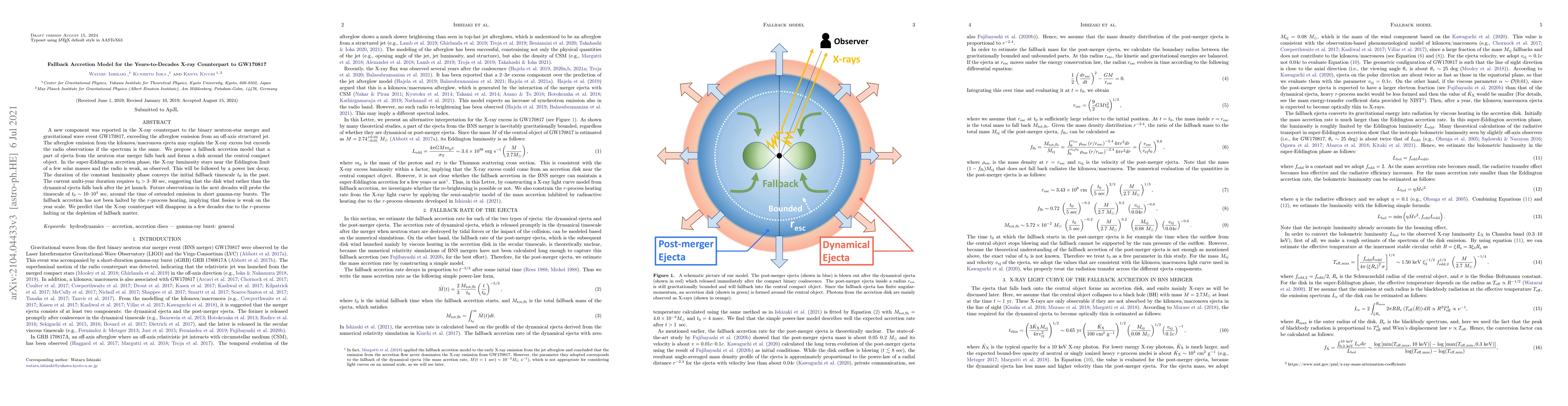 This paper proposes a fallback accretion model to explain the extended X-ray counterpart to GW170817, suggesting that part of the merger ejecta falls back to form a disk around the central object, leading to a super-Eddington accretion phase. The model predicts the X-ray counterpart will fade over decades due to $r$-process heating or depletion of fallback matter.