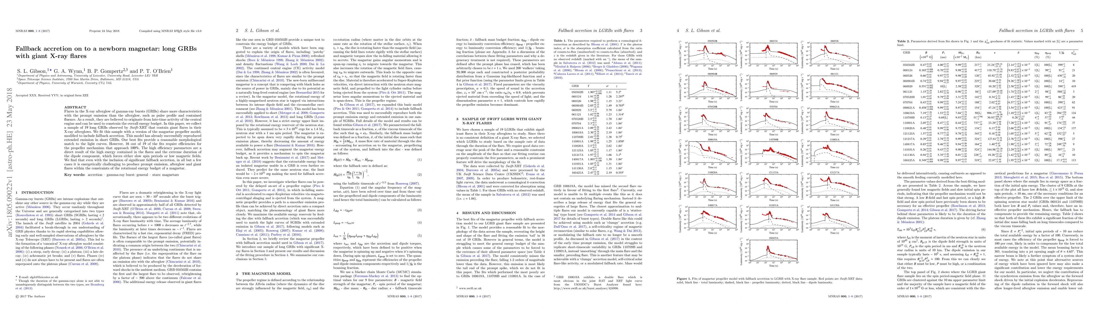 This paper investigates long gamma-ray bursts (GRBs) with giant X-ray flares, using a magnetar propeller model modified for fallback accretion. Despite a good morphological fit, most fits require nearly 100% efficiency for the propeller mechanism, indicating energy challenges in producing flares within magnetar rotational energy constraints.